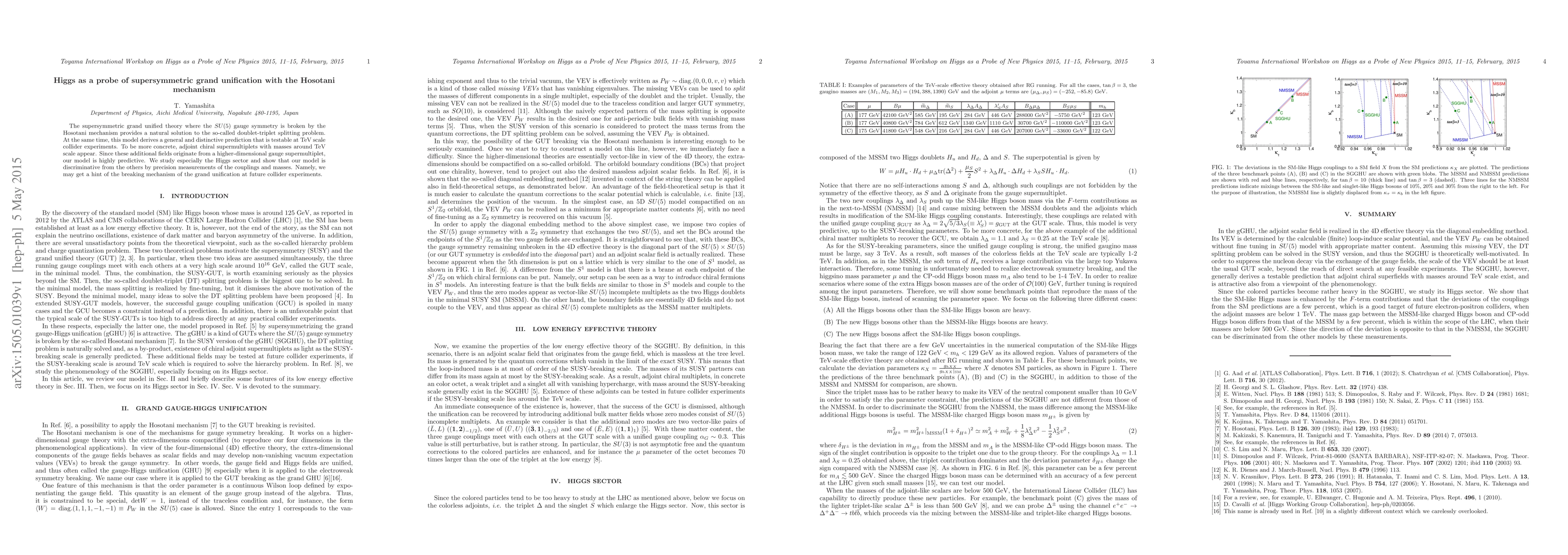 This paper explores a supersymmetric grand unified theory utilizing the Hosotani mechanism to break $SU(5)$ symmetry, addressing the doublet-triplet splitting problem. It predicts the appearance of TeV-scale adjoint chiral supermultiplets and suggests that precision measurements of Higgs couplings and masses at future collider experiments could reveal insights into the grand unification breaking mechanism.
