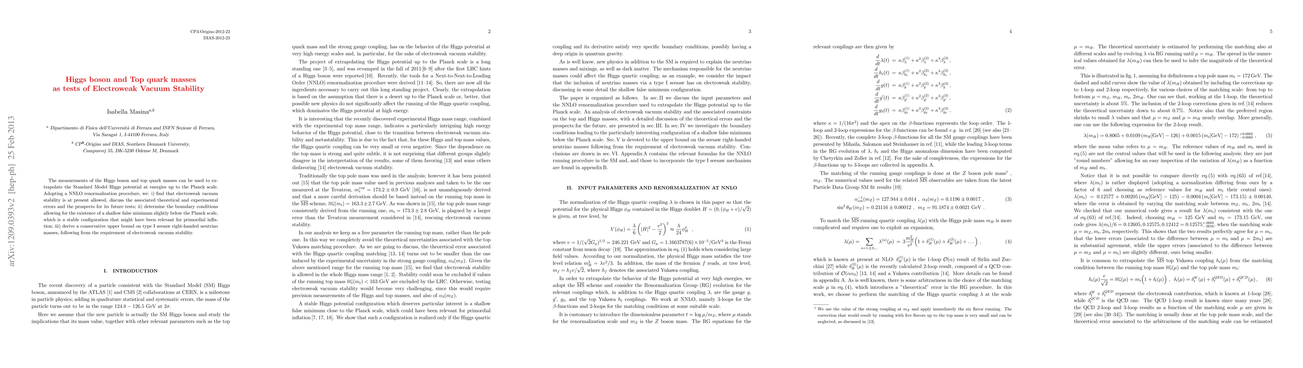 The measurements of the Higgs boson and top quark masses can be used to extrapolate the Standard Model Higgs potential at energies up to the Planck scale. Adopting a NNLO renormalization procedure, we: i) find that electroweak vacuum stability is at present allowed, discuss the associated theoretical and experimental errors and the prospects for its future tests; ii) determine the boundary conditions allowing for the existence of a shallow false minimum slightly below the Planck scale, which is a stable configuration that might have been relevant for primordial inflation; iii) derive a conservative upper bound on type I seesaw right-handed neutrino masses, following from the requirement of electroweak vacuum stability.