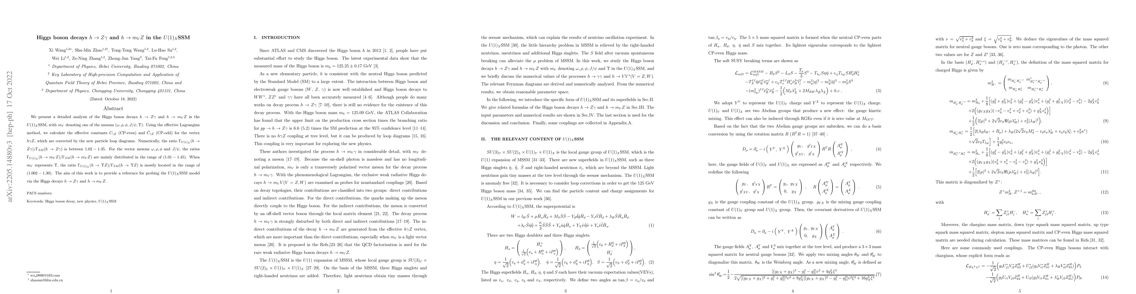 This paper analyzes the Higgs boson decays $h\rightarrow Z \gamma$ and $h\rightarrow m_V Z$ in the $U(1)_X$SSM, finding that decay rates are slightly enhanced compared to the Standard Model, with ratios ranging from 1.002 to 1.45, depending on the vector meson involved.