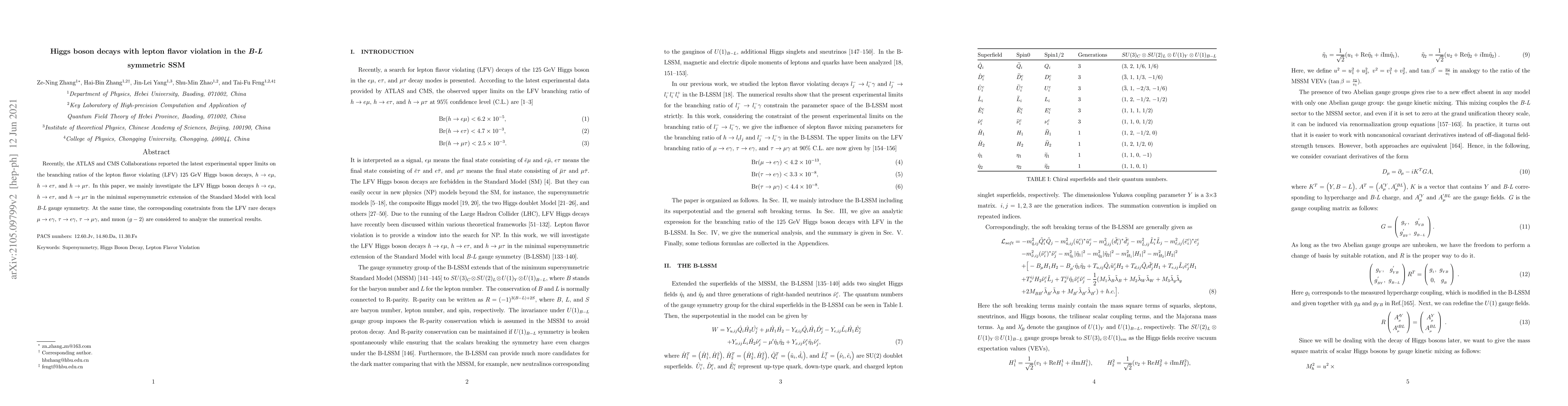 This paper investigates lepton flavor violating decays of the Higgs boson ($h\rightarrow e\mu$, $h\rightarrow e\tau$, and $h\rightarrow \mu\tau$) in the $B-L$ symmetric minimal supersymmetric Standard Model, considering constraints from related rare decays and muon $(g-2)$.