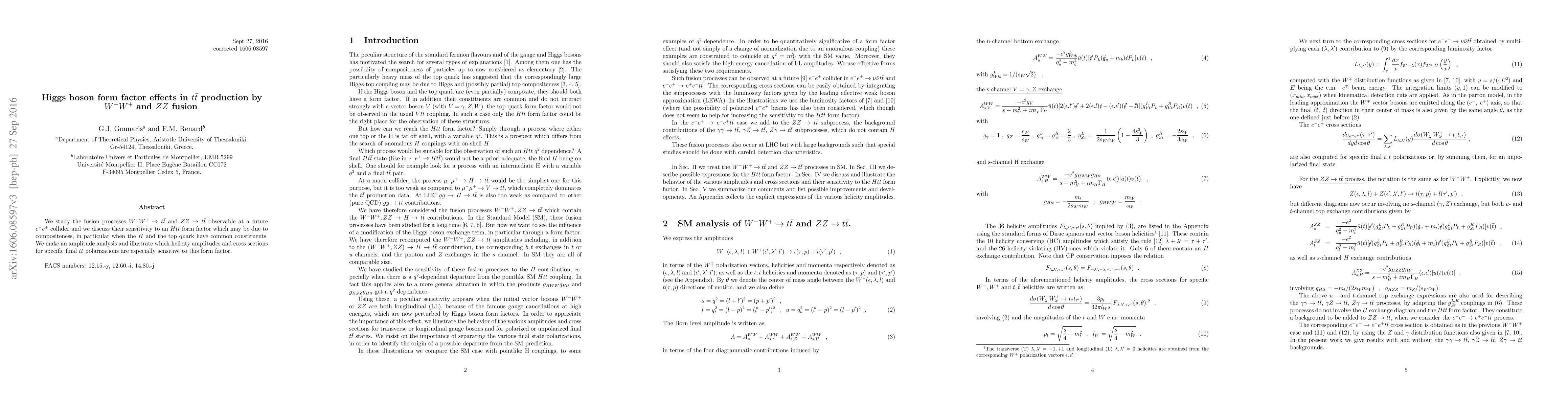 Researchers analyze $W^-W^+$ and $ZZ$ fusion processes for detecting an Higgs boson form factor that may indicate compositeness of the Higgs particle.