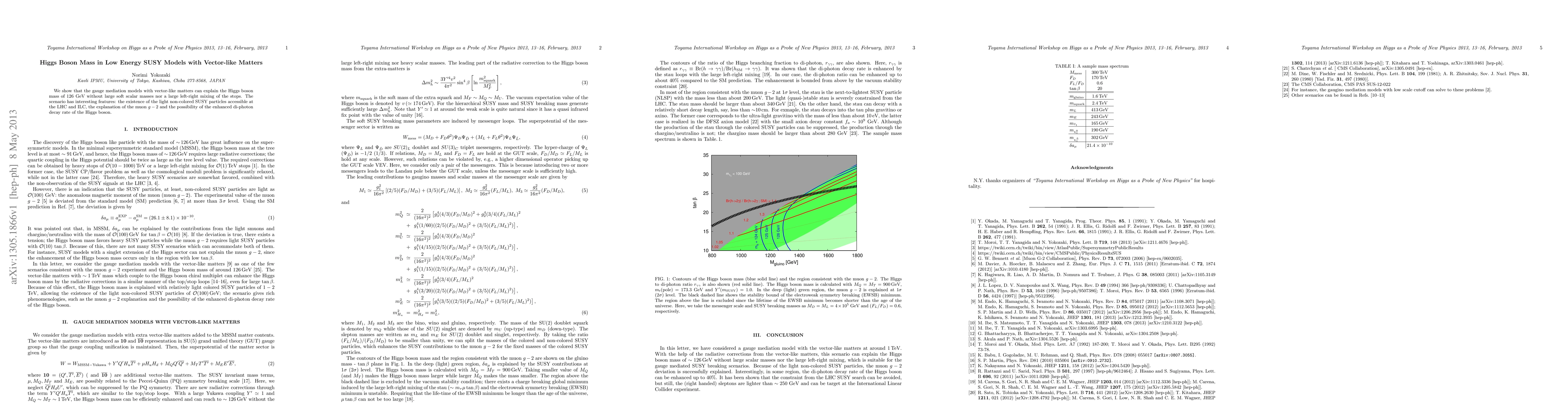 This paper demonstrates that gauge mediation models incorporating vector-like matters can naturally explain the observed Higgs boson mass of 126 GeV, featuring light non-colored SUSY particles and potential explanations for the muon g-2 anomaly and enhanced di-photon decay rates.