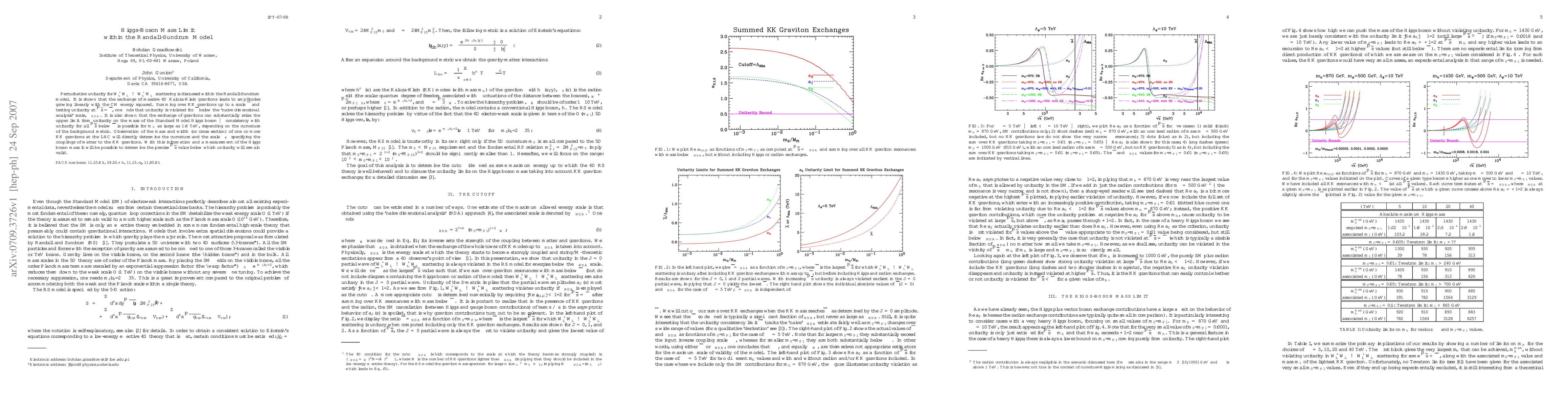 Perturbative unitarity for $\wlwl$ scattering is discussed within the Randall-Sundrum model. It is shown that the exchange of massive 4D Kaluza-Klein gravitons leads to amplitudes growing linearly with the CM energy squared. Summing over KK gravitons up to a scale $\lbar$ and testing unitarity at $\rts=\lbar$, one finds that unitarity is violated for $\lbar$ below the 'naive dimensional analysis' scale, $\lnda$. It is also shown that the exchange of gravitons can substantially relax the upper limit from unitarity on the mass of the Standard Model Higgs boson - consistency with unitarity for all $\rts$ below $\lbar$ is possible for $\mh$ as large as $ 1.4\tev$, depending on the curvature of the background metric. Observation of the mass and width (or cross section) of one or more KK gravitons at the LHC will directly determine the curvature and the scale $\lw$ specifying the couplings of matter to the KK gravitons. With this information and a measurement of the Higgs boson mass it will be possible to determine the precise $\rts$ value below which unitarity will remain valid.
