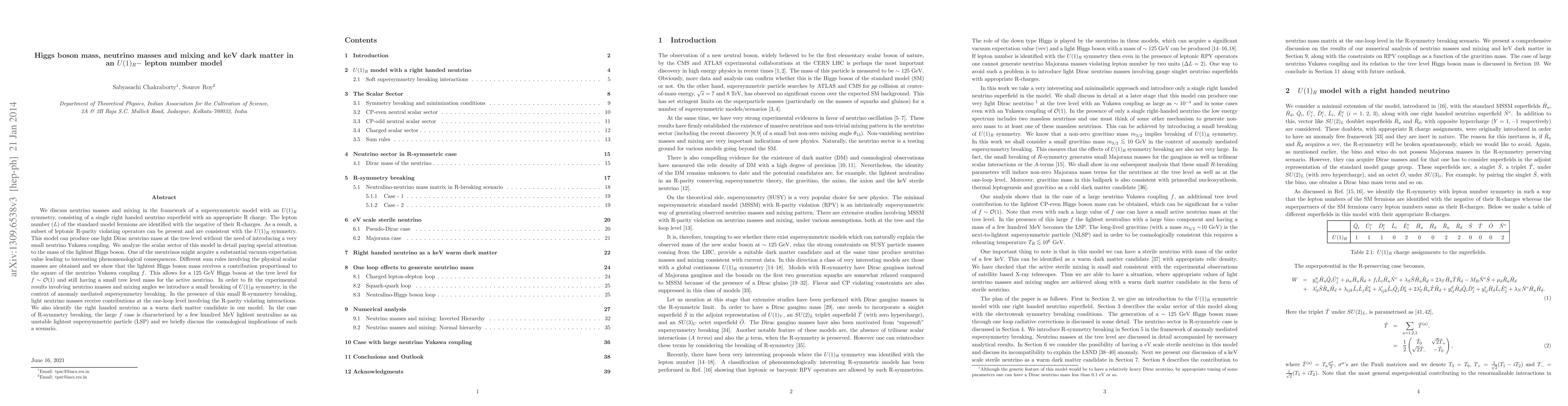 We discuss neutrino masses and mixing in the framework of a supersymmetric model with an $U(1)_{R}$ symmetry, consisting of a single right handed neutrino superfield with an appropriate R charge. The lepton number ($L$) of the standard model fermions are identified with the negative of their R-charges. As a result, a subset of leptonic R-parity violating operators can be present and are consistent with the $U(1)_R$ symmetry. This model can produce one light Dirac neutrino mass at the tree level without the need of introducing a very small neutrino Yukawa coupling. We analyze the scalar sector of this model in detail paying special attention to the mass of the lightest Higgs boson. One of the sneutrinos might acquire a substantial vacuum expectation value leading to interesting phenomenological consequences. Different sum rules involving the physical scalar masses are obtained and we show that the lightest Higgs boson mass receives a contribution proportional to the square of the neutrino Yukawa coupling $f$. This allows for a 125 GeV Higgs boson at the tree level for $f \sim {\cal O} (1)$ and still having a small tree level mass for the active neutrino. In order to fit the experimental results involving neutrino masses and mixing angles we introduce a small breaking of $U(1)_R$ symmetry, in the context of anomaly mediated supersymmetry breaking. In the presence of this small R-symmetry breaking, light neutrino masses receive contributions at the one-loop level involving the R-parity violating interactions. We also identify the right handed sterile neutrino as a warm dark matter candidate in our model. In the case of R-symmetry breaking, the large $f$ case is characterized by a few hundred MeV lightest neutralino as an unstable lightest supersymmetric particle (LSP) and we briefly discuss the cosmological implications of such a scenario.