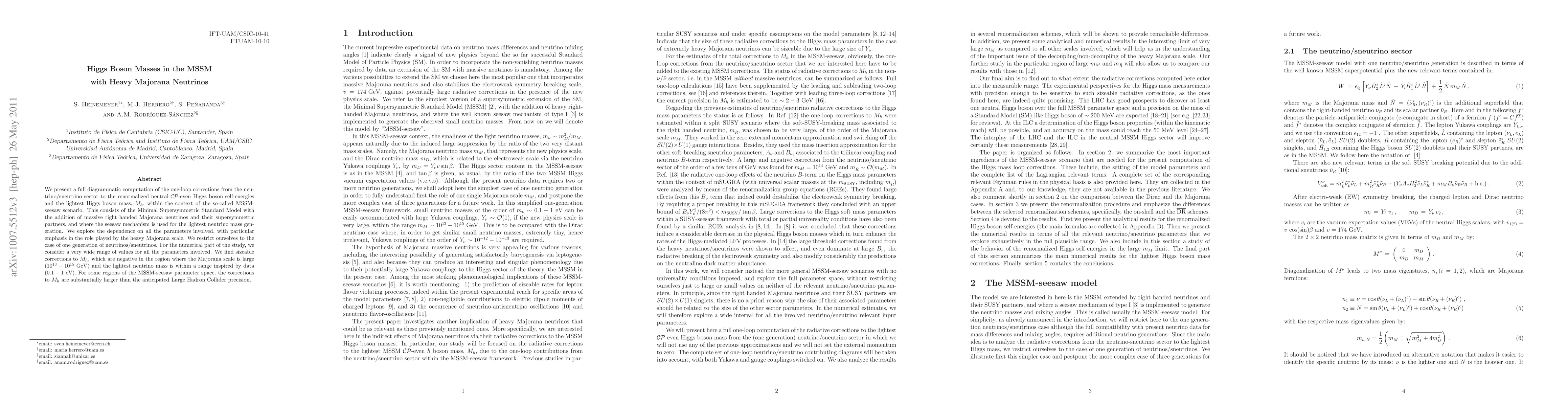 This paper computes one-loop corrections to the lightest Higgs boson mass in the MSSM-seesaw scenario, where heavy Majorana neutrinos and their supersymmetric partners are included. It finds significant negative corrections to the Higgs mass when the Majorana scale is large and the lightest neutrino mass is within a data-inspired range.
