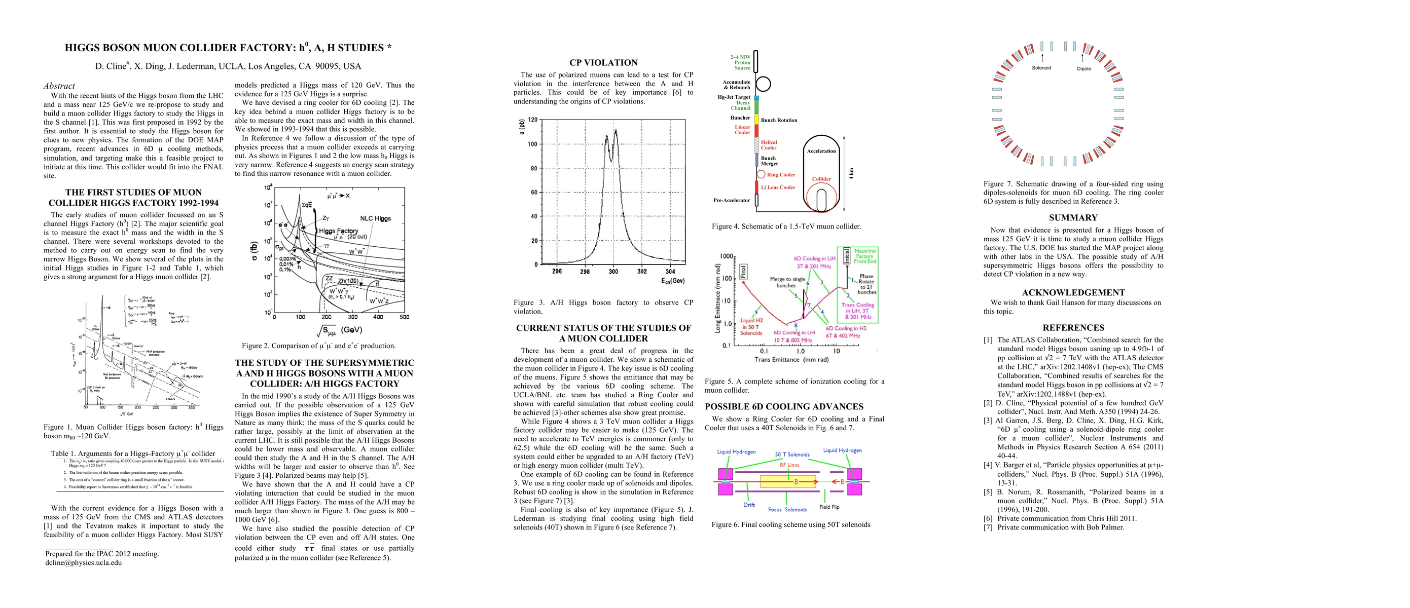 With the recent hints of the Higgs boson from the LHC and a mass near 125 GeV/c we re-propose to study and build a muon collider Higgs factory to study the Higgs in the S channel [1]. This was first proposed in 1992 by the first author. It is essential to study the Higgs boson for clues to new physics. The formation of the DOE MAP program, recent advances in 6D {\mu} cooling methods, simulation, and targeting make this a feasible project to initiate at this time. This collider would fit into the FNAL site.
