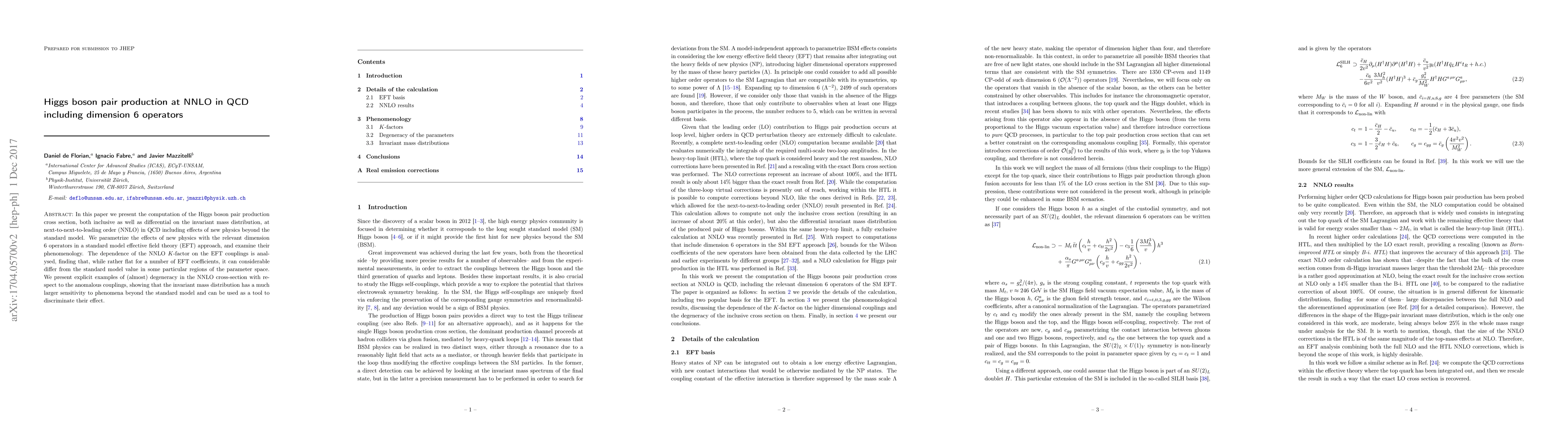 This paper computes Higgs boson pair production at NNLO in QCD, incorporating dimension 6 operators from an effective field theory to model new physics beyond the Standard Model. It finds significant differences in the NNLO $K$-factor in certain parameter regions and highlights the invariant mass distribution's enhanced sensitivity to new physics effects.