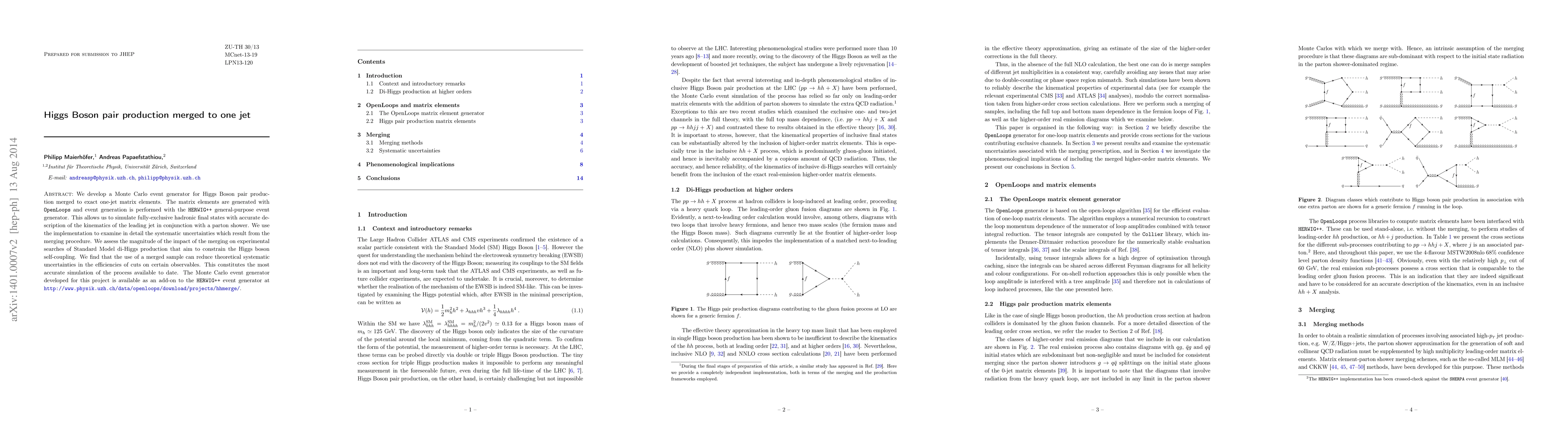 This research introduces a Monte Carlo event generator for simulating Higgs Boson pair production merged to exactly one-jet, using OpenLoops for matrix elements and HERWIG++ for event generation. It details the systematic uncertainties from the merging process and demonstrates that using a merged sample can decrease theoretical uncertainties in experimental searches for Standard Model di-Higgs production, optimizing constraints on the Higgs boson self-coupling.