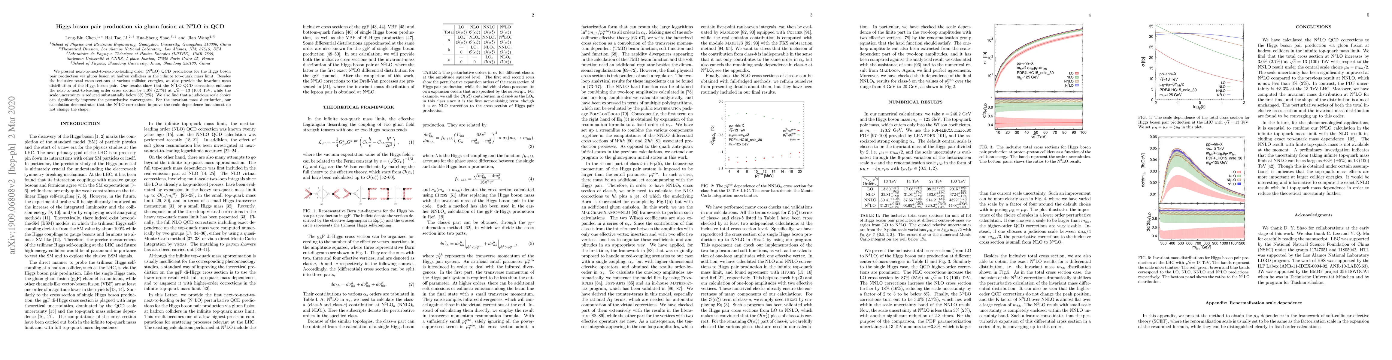 This paper presents N$^3$LO QCD predictions for Higgs boson pair production via gluon fusion, showing a $3.0\%$ ($2.7\%$) enhancement at $\sqrt{s}=13$ ($100$) TeV compared to N$^2$LO, with scale uncertainties reduced below $3\%$ ($2\%$). The N$^3$LO corrections improve scale dependence in the invariant mass distribution without significantly altering its shape.