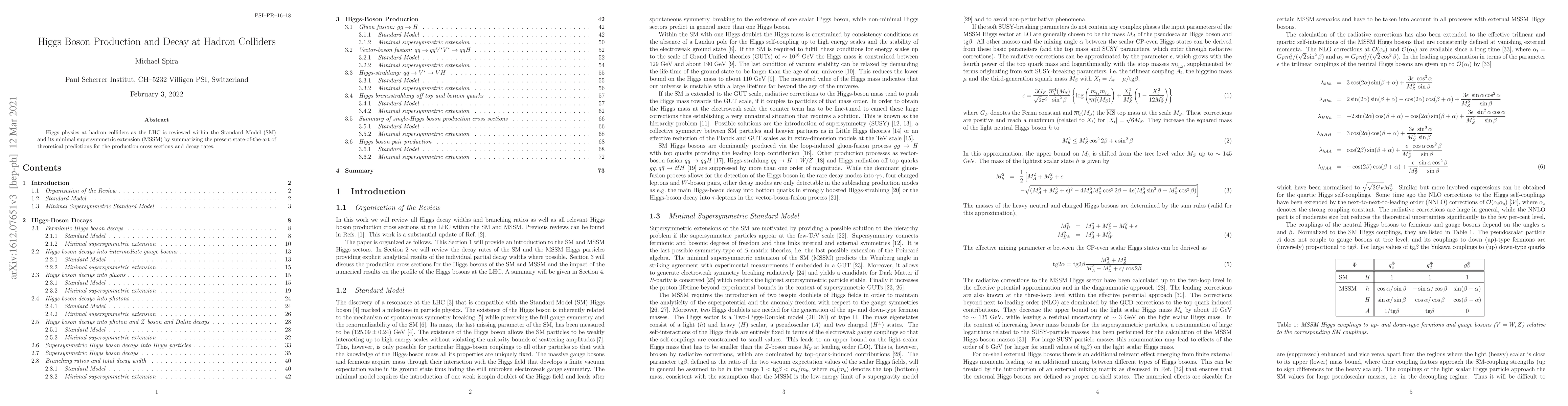 Higgs physics at hadron colliders as the LHC is reviewed within the Standard Model (SM) and its minimal supersymmetric extension (MSSM) by summarizing the present state-of-the-art of theoretical predictions for the production cross sections and decay rates.