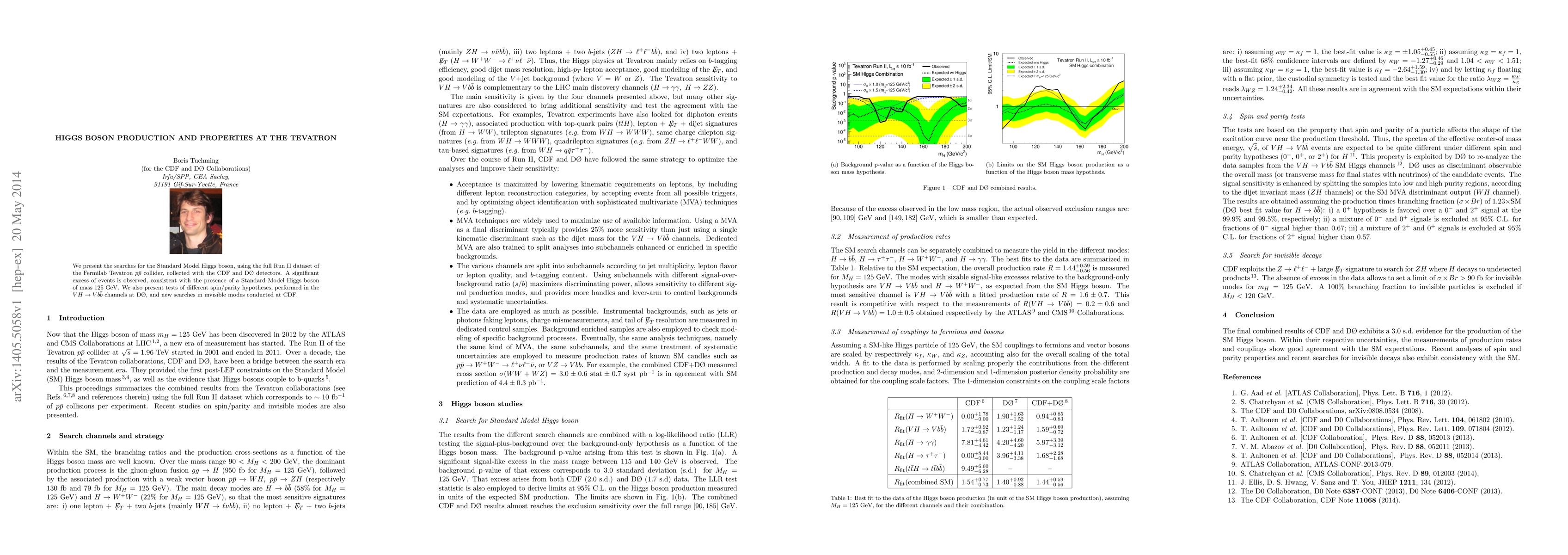 This paper reports searches for the Standard Model Higgs boson using the full Tevatron dataset, observing a significant excess consistent with a 125 GeV Higgs boson. It also includes tests of spin/parity hypotheses and new searches in invisible decay modes.