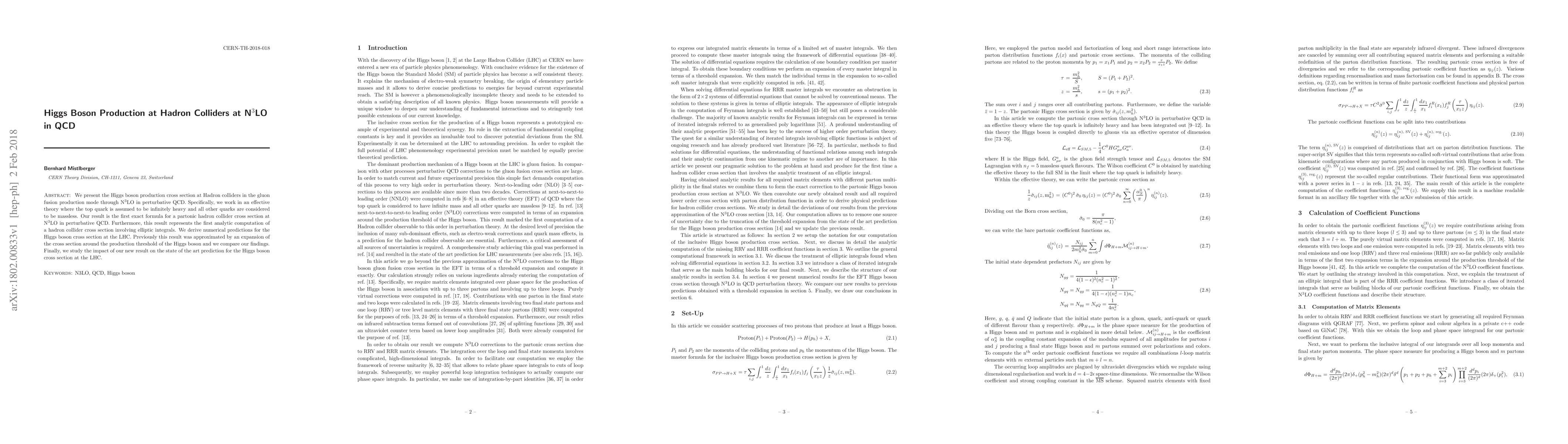This paper presents the first exact formula for Higgs boson production cross section at N3LO in perturbative QCD, specifically in gluon fusion mode, using an effective theory with infinitely heavy top quarks. It also introduces the first analytic computation involving elliptic integrals and provides improved numerical predictions for the LHC.