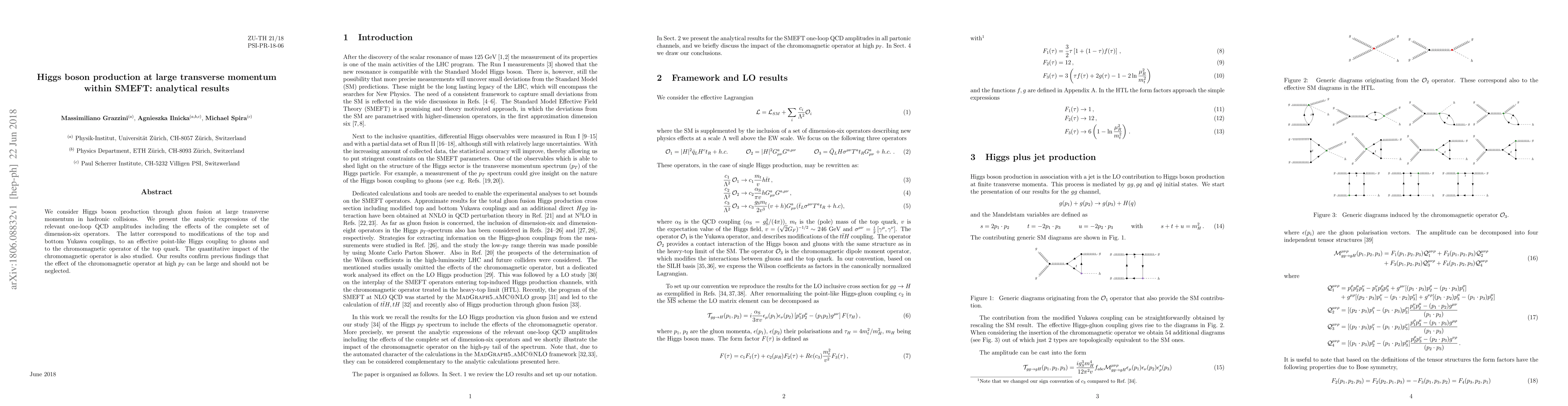 We consider Higgs boson production through gluon fusion at large transverse momentum in hadronic collisions. We present the analytic expressions of the relevant one-loop QCD amplitudes including the effects of the complete set of dimension-six operators. The latter correspond to modifications of the top and bottom Yukawa couplings, to an effective point-like Higgs coupling to gluons and to the chromomagnetic operator of the top quark. The quantitative impact of the chromomagnetic operator is also studied. Our results confirm previous findings that the effect of the chromomagnetic operator at high $p_T$ can be large and should not be neglected.