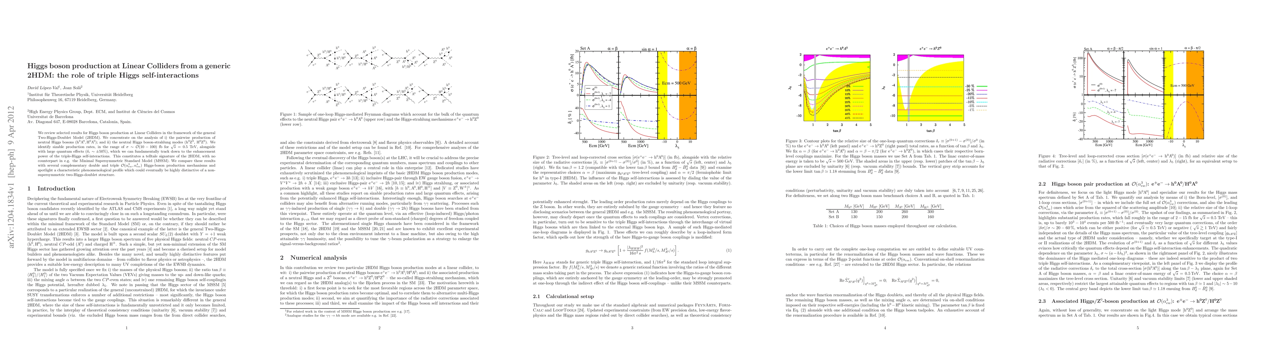 We review selected results for Higgs boson production at Linear Colliders in the framework of the general Two-Higgs-Doublet Model (2HDM). We concentrate on the analysis of i) the pairwise production of neutral Higgs bosons (hA,HA); and ii) the neutral Higgs boson-strahlung modes (hZ, HZ). We identify sizable production rates, in the range of 10-100 fb for center-of-mass energies of 0.5 TeV, alongside with large quantum effects (up to 50 %), which we can fundamentally track down to the enhancement power of the triple-Higgs self-interactions. This constitutes a telltale signature of the 2HDM, with no counterpart in e.g. the Minimal Supersymmetric Standard Model (MSSM). We compare these results with several complementary double and triple Higgs-boson production mechanisms at order O(\alpha^3_{ew})-O(\alpha^4_{ew} and spotlight a characteristic phenomenological profile which could eventually be highly distinctive of a non-supersymmetric two-Higgs-doublet structure.