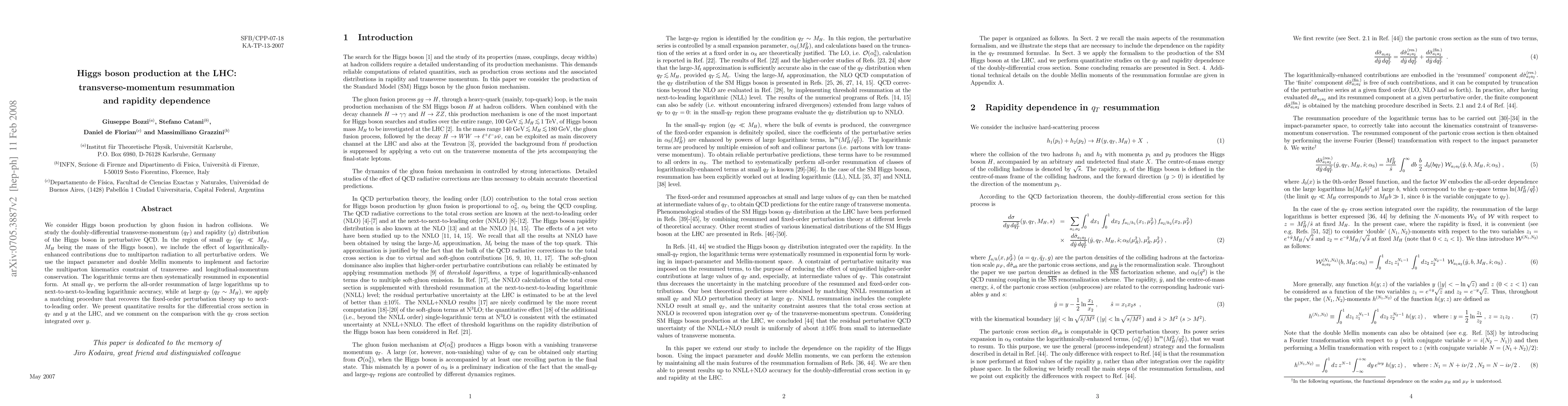 This paper studies the doubly-differential transverse-momentum and rapidity distributions of Higgs bosons produced via gluon fusion at the LHC, focusing on resummation of large logarithmic contributions at small transverse momentum. It achieves next-to-next-to-leading logarithmic accuracy and matches fixed-order perturbation theory at larger transverse momenta.