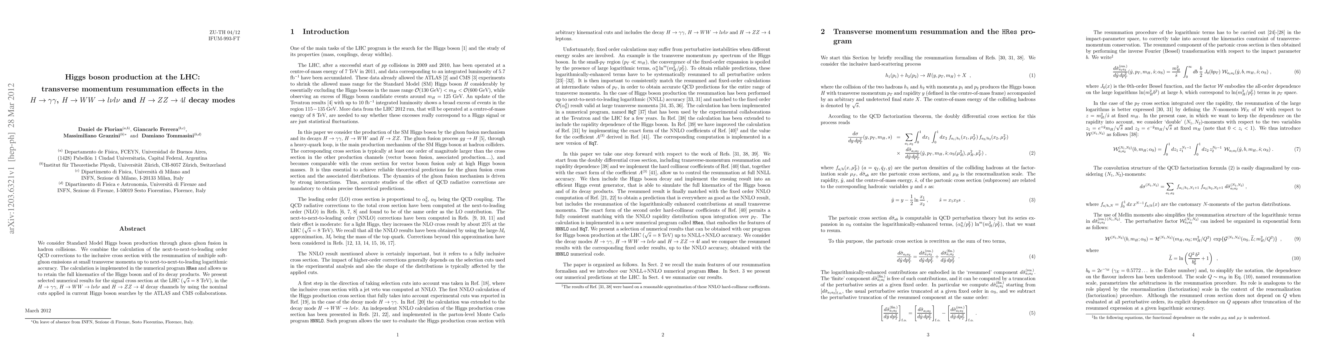 We consider Standard Model Higgs boson production through gluon--gluon fusion in hadron collisions. We combine the calculation of the next-to-next-to-leading order QCD corrections to the inclusive cross section with the resummation of multiple soft-gluon emissions at small transverse momenta up to next-to-next-to-leading logarithmic accuracy. The calculation is implemented in the numerical program HRes and allows us to retain the full kinematics of the Higgs boson and of its decay products. We present selected numerical results for the signal cross section at the LHC (\sqrt{s}=8 TeV), in the H->2gamma, H->WW->lnu lnu and H->ZZ->4l decay channels by using the nominal cuts applied in current Higgs boson searches by the ATLAS and CMS collaborations.