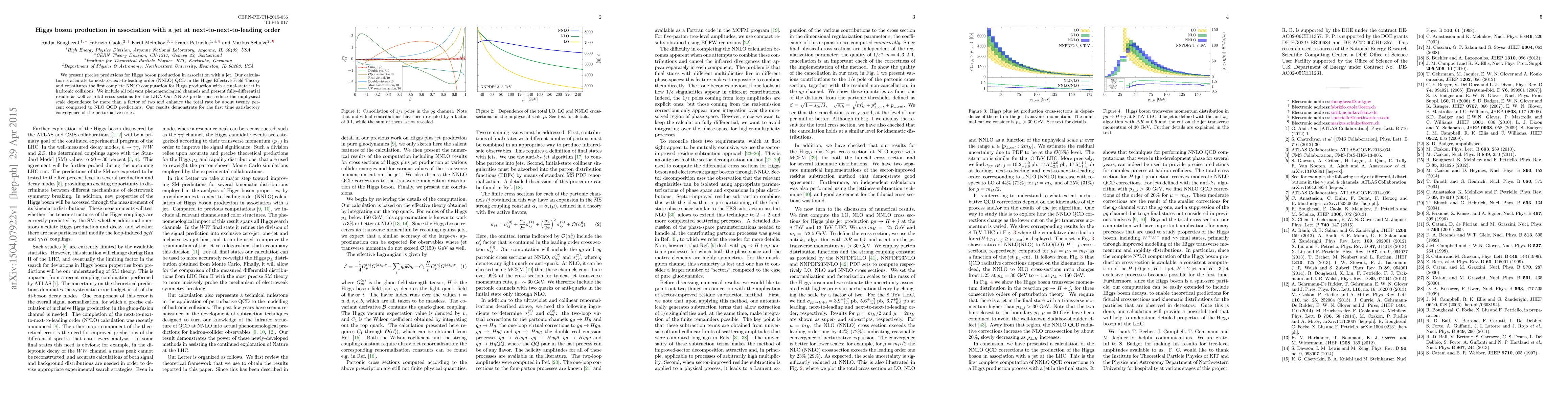 This paper presents precise NNLO QCD predictions for Higgs boson production with a jet in hadronic collisions, marking the first complete NNLO computation for such processes. The results significantly reduce scale dependence and improve the total rate by about twenty percent compared to NLO predictions, demonstrating satisfactory convergence of the perturbative series.
