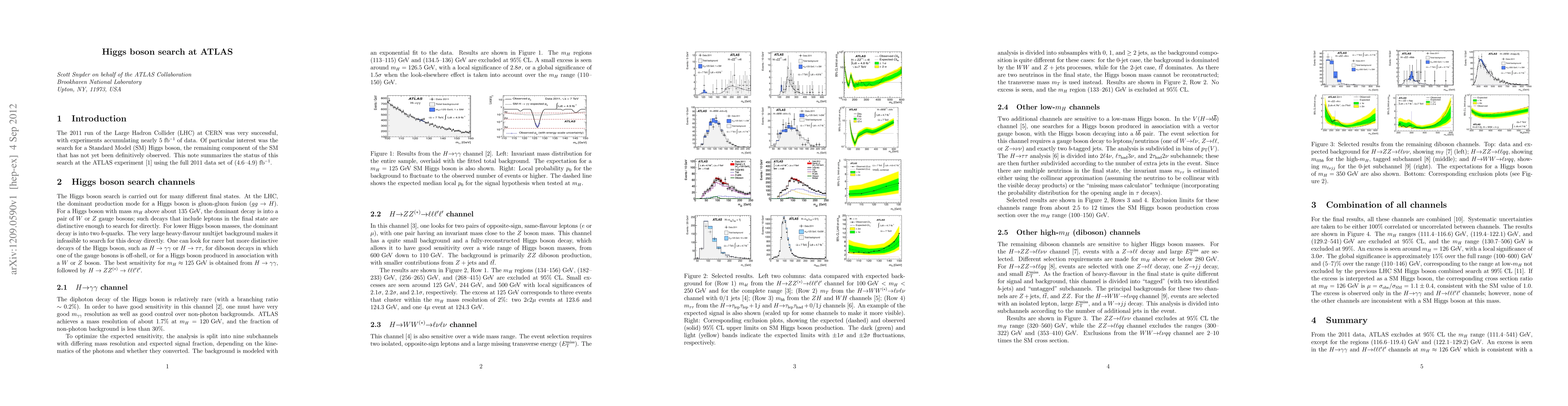 Summary: This paper summarizes the results of the ATLAS experiment's search for the Higgs boson using approximately 5 fb^-1 of data collected in 2011, presenting the status and findings from the ongoing efforts at the Large Hadron Collider (LHC). Presented at the Physics at the LHC 2012 conference in Vancouver.