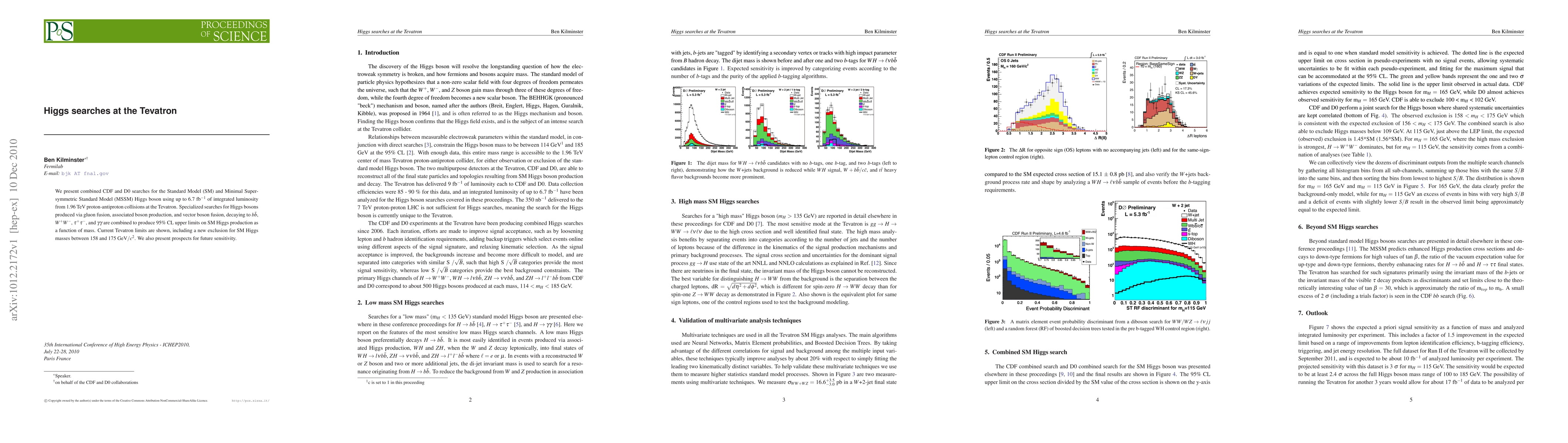 This paper combines CDF and D0 searches for Standard Model and MSSM Higgs bosons at the Tevatron, using up to 6.7 fb$^{-1}$ of data. The study sets 95% CL upper limits on SM Higgs production and excludes Higgs masses between 158 and 175 GeV$/c^2$, while also discussing future sensitivity prospects.