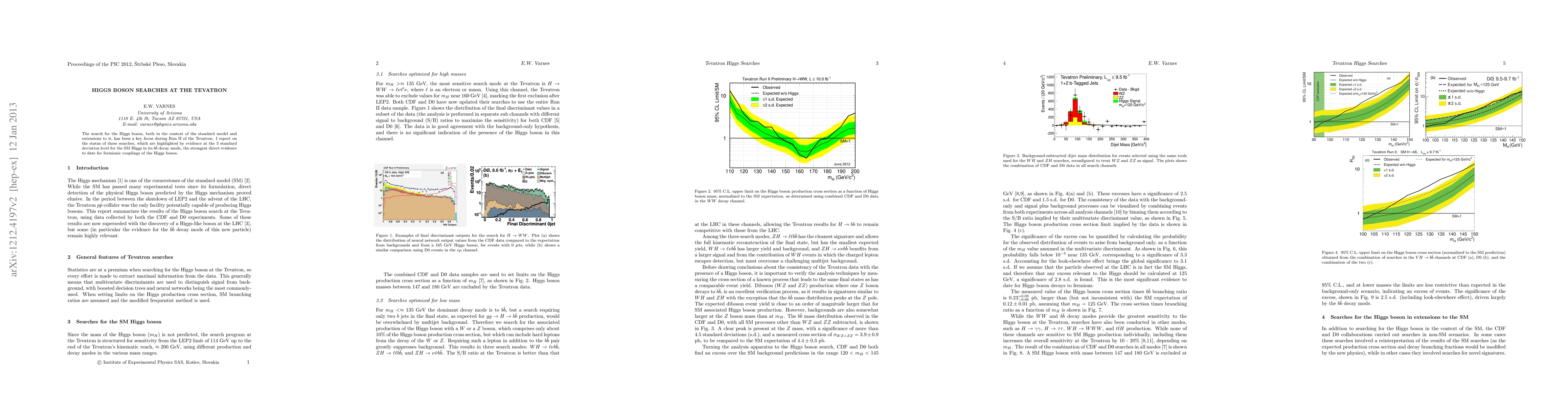 This paper reports on Higgs boson searches conducted during Run II of the Tevatron, highlighting evidence at the 3 standard deviation level for the Standard Model Higgs in its $b\bar{b}$ decay mode, marking the strongest direct evidence to date for fermionic couplings of the Higgs boson.