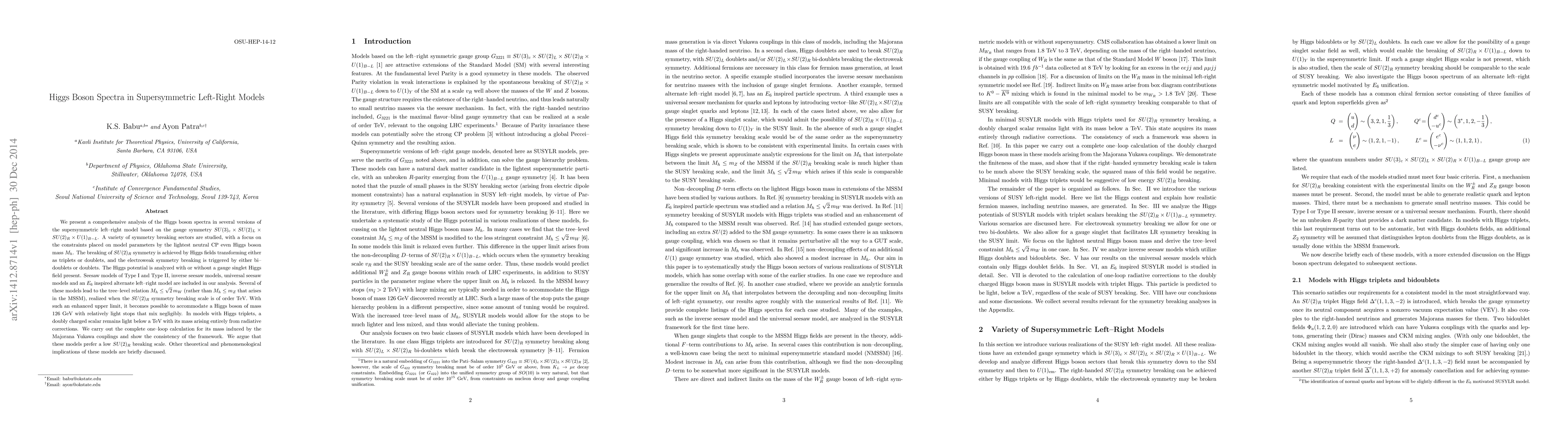 This paper analyzes Higgs boson spectra in supersymmetric left-right models, focusing on constraints from the lightest neutral CP-even Higgs boson mass. It explores various symmetry breaking scenarios and finds that models with a TeV-scale $SU(2)_R$ breaking scale can accommodate a 126 GeV Higgs boson with light stops.