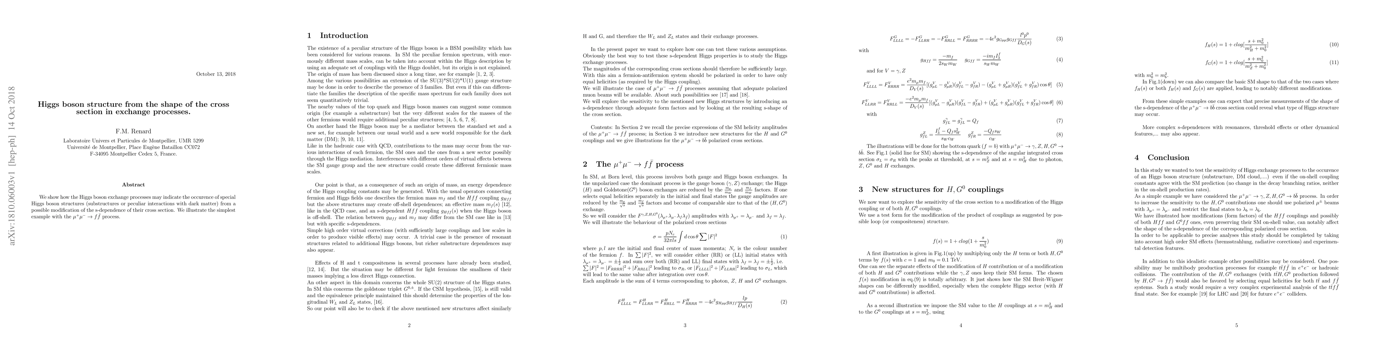 We show how the Higgs boson exchange processes may indicate the occurence of special Higgs boson structures (substructures or peculiar interactions with dark matter) from a possible modification of the s-dependence of their cross section. We illustrate the simplest example with the $\mu^+\mu^-\to f\bar f$ process.