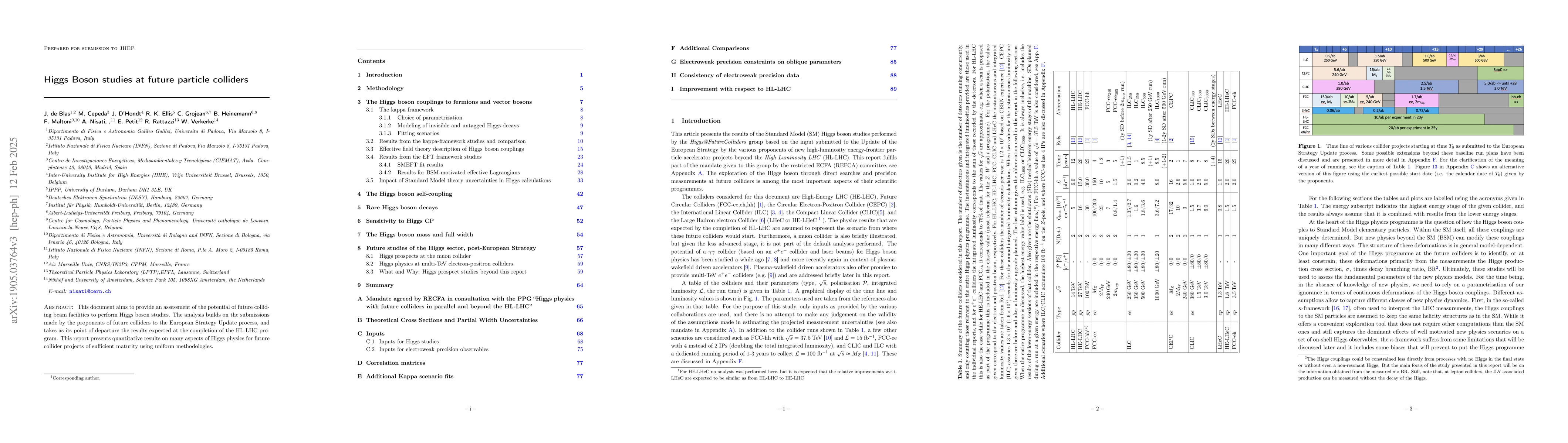 This paper evaluates the capabilities of future particle colliders to study the Higgs boson, building on submissions to the European Strategy Update and incorporating results from the HL-LHC program. It presents quantitative analyses of Higgs physics for mature collider projects, refining methodologies and considering additional run scenarios based on feedback from the Granada symposium.