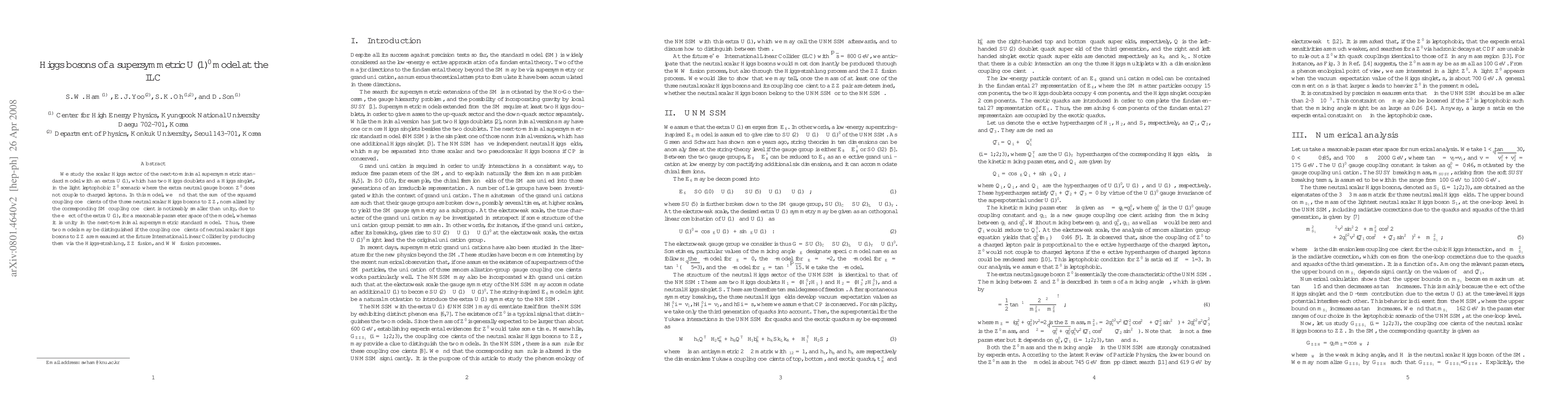 We study the scalar Higgs sector of the next-to-minimal supersymmetric standard model with an extra U(1), which has two Higgs doublets and a Higgs singlet, in the light leptophobic $Z'$ scenario where the extra neutral gauge boson $Z'$ does not couple to charged leptons. In this model, we find that the sum of the squared coupling coefficients of the three neutral scalar Higgs bosons to $ZZ$, normalized by the corresponding SM coupling coefficient is noticeably smaller than unity, due to the effect of the extra U(1), for a reasonable parameter space of the model, whereas it is unity in the next-to-minimal supersymmetric standard model. Thus, these two models may be distinguished if the coupling coefficients of neutral scalar Higgs bosons to $ZZ$ are measured at the future International Linear Collider by producing them via the Higgs-strahlung, $ZZ$ fusion, and $WW$ fusion processes.