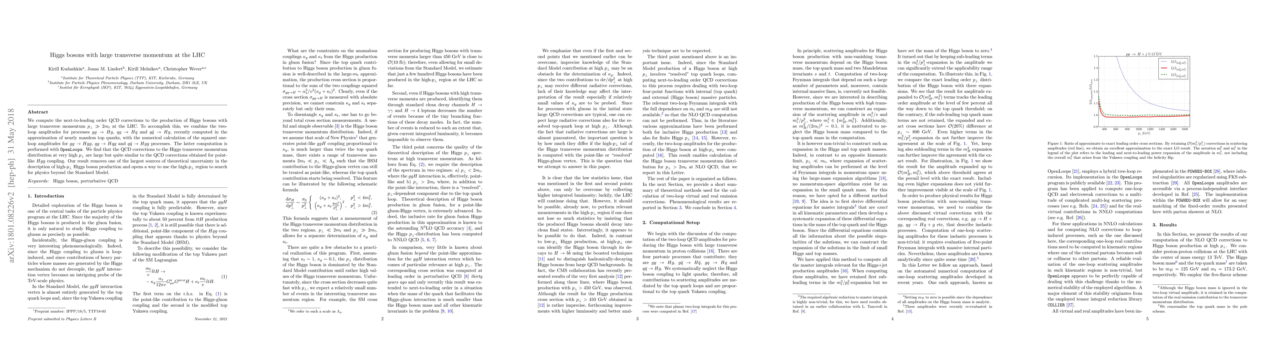This paper calculates next-to-leading order QCD corrections for Higgs bosons with large transverse momentum at the LHC, combining recent two-loop amplitudes and numerical one-loop squared amplitudes. The findings show significant QCD corrections, reducing theoretical uncertainties and enabling new searches for physics beyond the Standard Model.