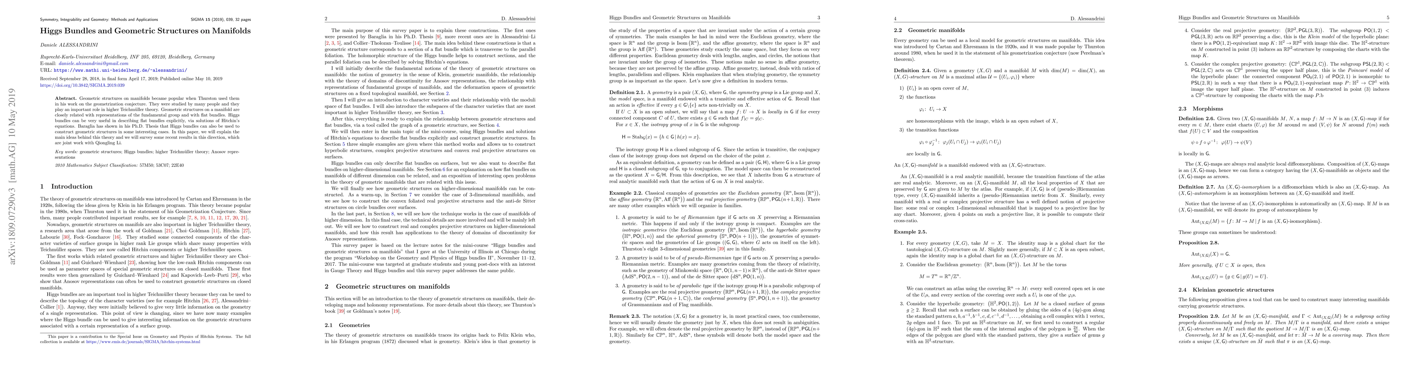 This paper explores the relationship between Higgs bundles and geometric structures on manifolds, demonstrating how Higgs bundles can construct and describe these structures. It surveys recent joint work with Qiongling Li, building on Baraglia's foundational thesis linking Higgs bundles to flat bundles and geometric representations.