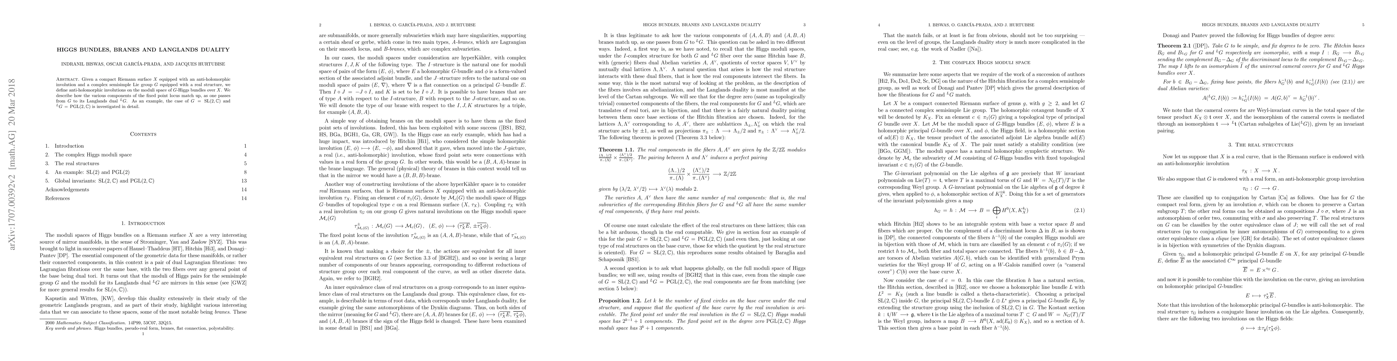 Given a compact Riemann surface $X$ and a complex reductive Lie group $G$ equipped with real structures, we define antiholomorphic involutions on the moduli space of $G$-Higgs bundles over $X$. We investigate how the various components of the fixed point locus match up, as one passes from $G$ to its Langlands dual $^LG$. Special attention is given to the case $G=SL(2,\C)$ and $^LG=PGL(2,\C)$.