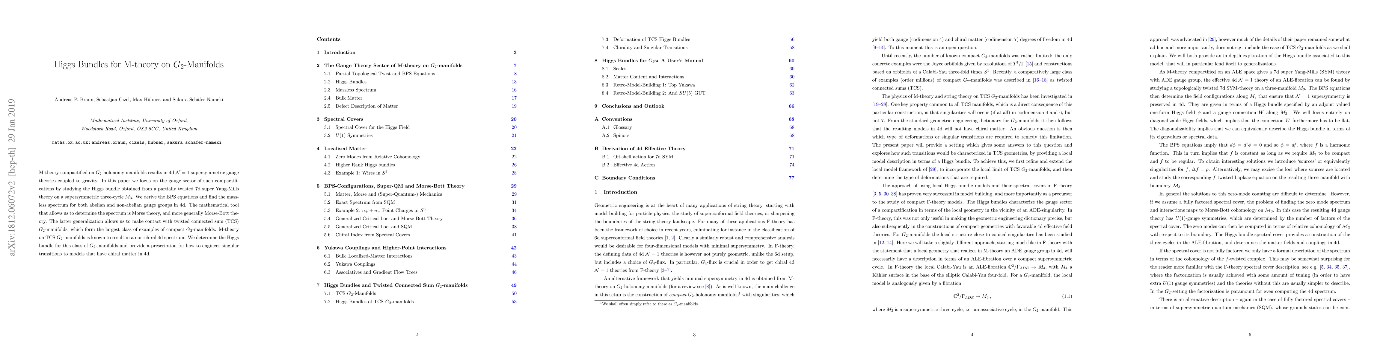 M-theory compactified on $G_2$-holonomy manifolds results in 4d $\mathcal{N}=1$ supersymmetric gauge theories coupled to gravity. In this paper we focus on the gauge sector of such compactifications by studying the Higgs bundle obtained from a partially twisted 7d super Yang-Mills theory on a supersymmetric three-cycle $M_3$. We derive the BPS equations and find the massless spectrum for both abelian and non-abelian gauge groups in 4d. The mathematical tool that allows us to determine the spectrum is Morse theory, and more generally Morse-Bott theory. The latter generalization allows us to make contact with twisted connected sum (TCS) $G_2$-manifolds, which form the largest class of examples of compact $G_2$-manifolds. M-theory on TCS $G_2$-manifolds is known to result in a non-chiral 4d spectrum. We determine the Higgs bundle for this class of $G_2$-manifolds and provide a prescription for how to engineer singular transitions to models that have chiral matter in 4d.