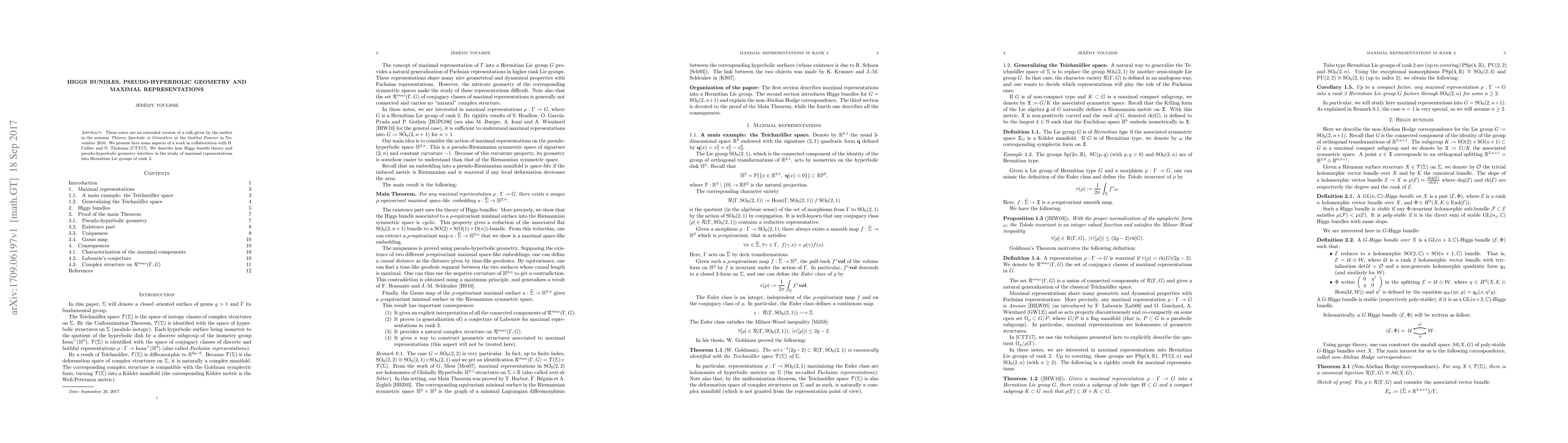 Summary: This paper explores the interplay between Higgs bundle theory and pseudo-hyperbolic geometry in the context of maximal representations of Hermitian Lie groups of rank 2, building on collaborative work with B. Collier and N. Tholozan. The study highlights the geometric implications of these interactions.