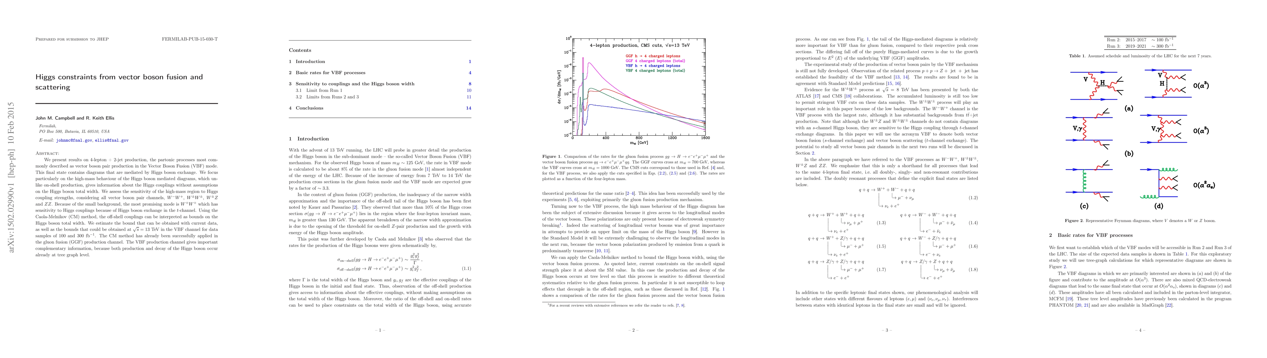 This paper investigates the high-mass behavior of vector boson fusion processes, focusing on 4-lepton + 2-jet production mediated by Higgs boson exchange to constrain Higgs couplings. The study highlights the $W^+ W^+$ channel's high sensitivity and uses the Caola-Melnikov method to derive bounds on the Higgs boson total width, providing insights for current and future data at 13 TeV.