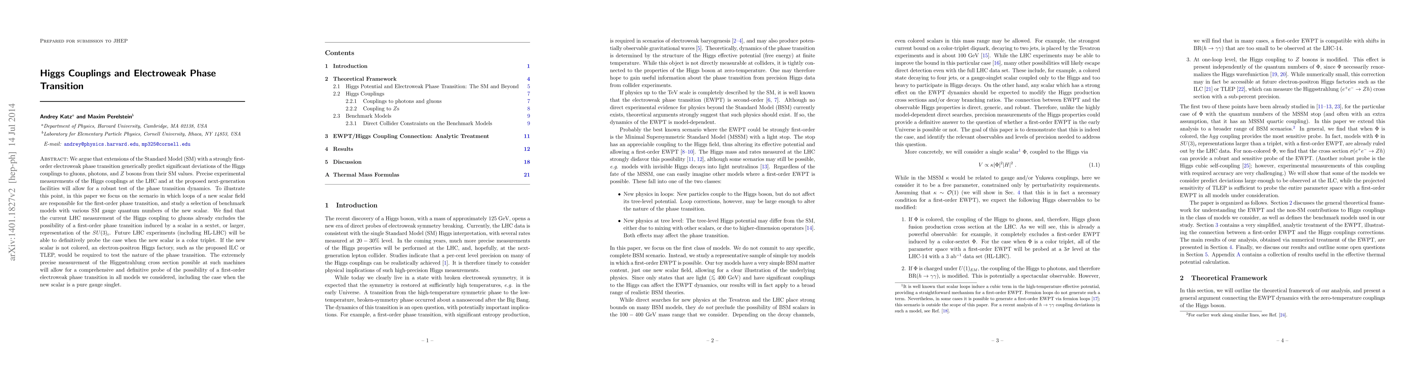 This paper argues that models predicting a strongly first-order electroweak phase transition often show significant deviations in Higgs couplings from Standard Model values. Future LHC and next-generation facilities' precise measurements of Higgs couplings will provide a robust test of these dynamics, particularly in scenarios involving new scalar fields.