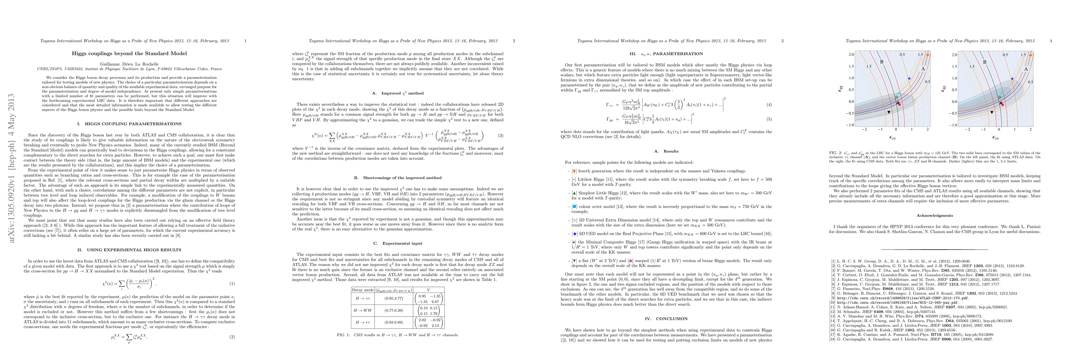 This paper proposes a parameterization for Higgs boson decay and production processes to test new physics models, emphasizing the need for detailed information to explore potential deviations from the Standard Model, with improvements expected from future LHC data.