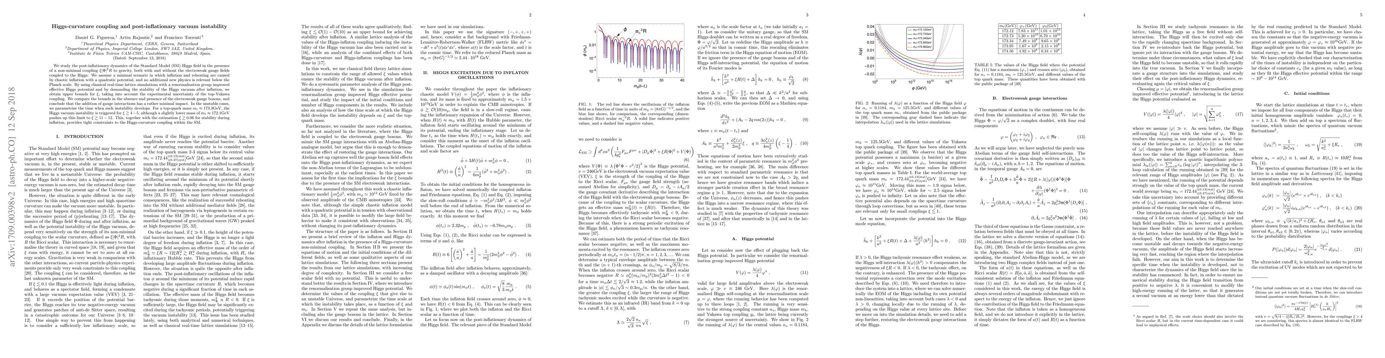 This paper investigates the post-inflationary dynamics of the Standard Model Higgs field with a non-minimal coupling to gravity, determining upper bounds for the coupling constant $\xi$ to ensure vacuum stability. The study finds that the Higgs vacuum becomes unstable for $\xi \gtrsim 4-5$ with a typical top-quark mass, but this limit increases significantly with a slightly lower top-quark mass.