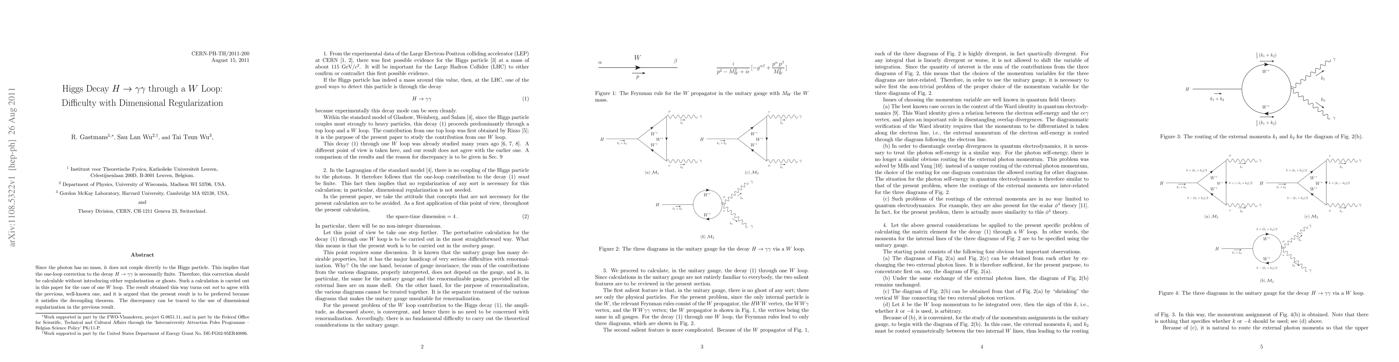 Since the photon has no mass, it does not couple directly to the Higgs particle. This implies that the one-loop correction to the decay H --> \gamma\gamma\ is necessarily finite. Therefore, this correction should be calculable without introducing either regularization or ghosts. Such a calculation is carried out in this paper for the case of one W loop. The result obtained this way turns out not to agree with the previous, well-known one, and it is argued that the present result is to be preferred because it satisfies the decoupling theorem. The discrepancy can be traced to the use of dimensional regularization in the previous result.