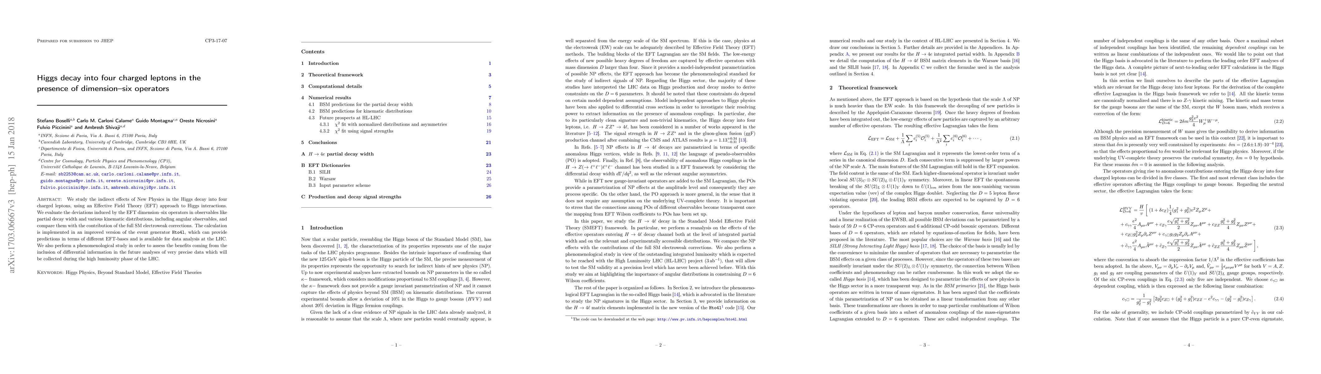 This paper investigates the indirect effects of New Physics on Higgs decay into four charged leptons via an Effective Field Theory approach, evaluating deviations from dimension-six operators in decay widths and kinematic distributions. An improved event generator, Hto4l, is developed for these predictions and a phenomenological study is conducted to assess the benefits of differential data analysis in future LHC high luminosity phase experiments.