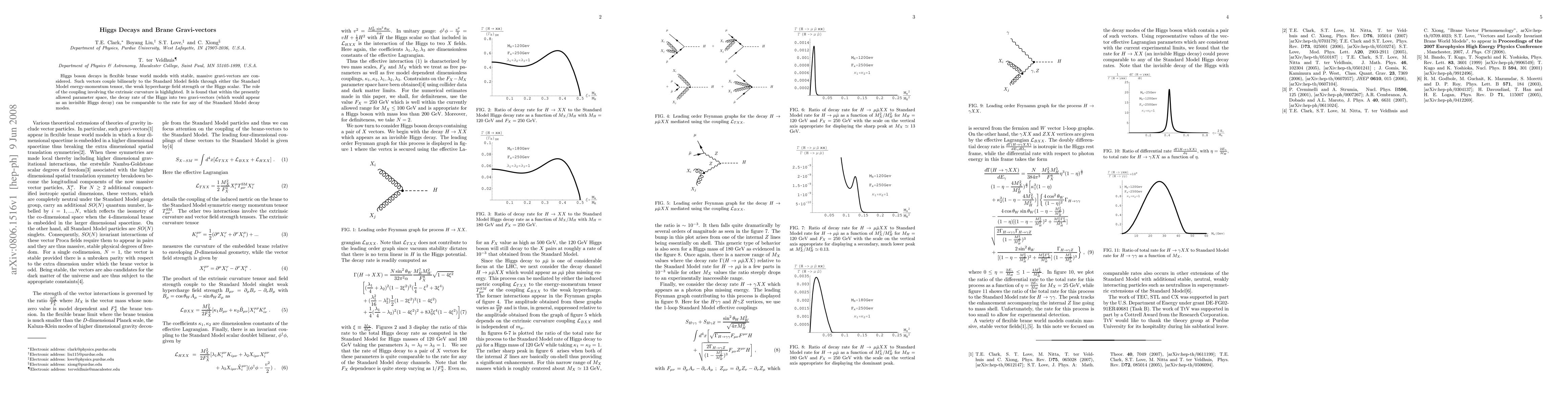 This paper explores Higgs boson decays in brane world models featuring massive gravi-vectors, which can couple to Standard Model fields. It finds that the decay rate of Higgs into two gravi-vectors could be significant, potentially rivaling Standard Model decay rates, within the allowed parameter space.