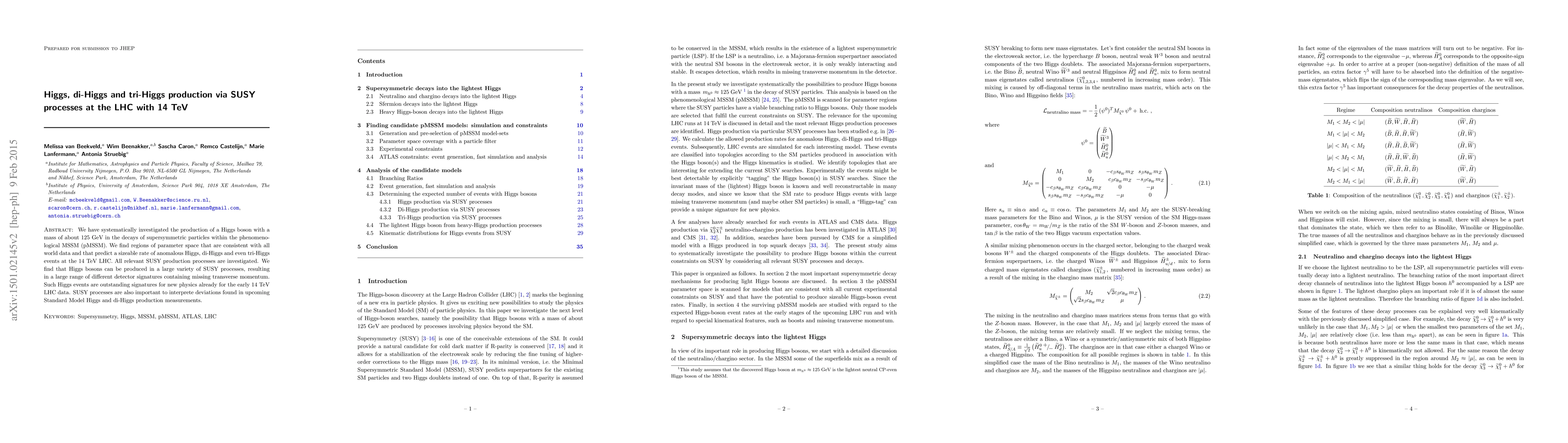 We have systematically investigated the production of a Higgs boson with a mass of about $125$ GeV in the decays of supersymmetric particles within the phenomenological MSSM (pMSSM). We find regions of parameter space that are consistent with all world data and that predict a sizeable rate of anomalous Higgs, di-Higgs and even tri-Higgs events at the 14 TeV LHC. All relevant SUSY production processes are investigated. We find that Higgs bosons can be produced in a large variety of SUSY processes, resulting in a large range of different detector signatures containing missing transverse momentum. Such Higgs events are outstanding signatures for new physics already for the early 14 TeV LHC data. SUSY processes are also important to interprete deviations found in upcoming Standard Model Higgs and di-Higgs production measurements.