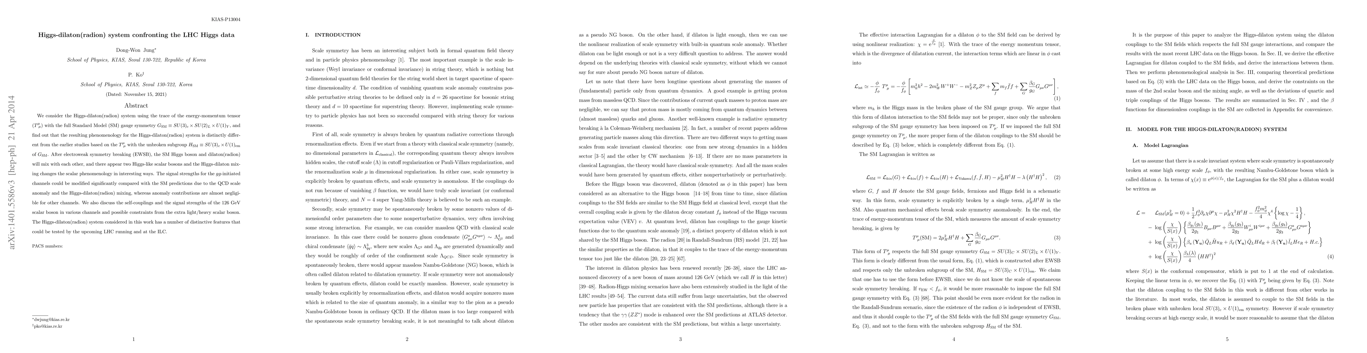 This paper examines the Higgs-dilaton(radion) system under the full Standard Model gauge symmetry, revealing distinct phenomenology compared to previous studies. It highlights significant modifications in signal strengths for $gg$-initiated channels due to QCD scale anomaly and Higgs-dilaton mixing, while discussing potential constraints from extra scalar bosons and implications for future LHC and ILC experiments.