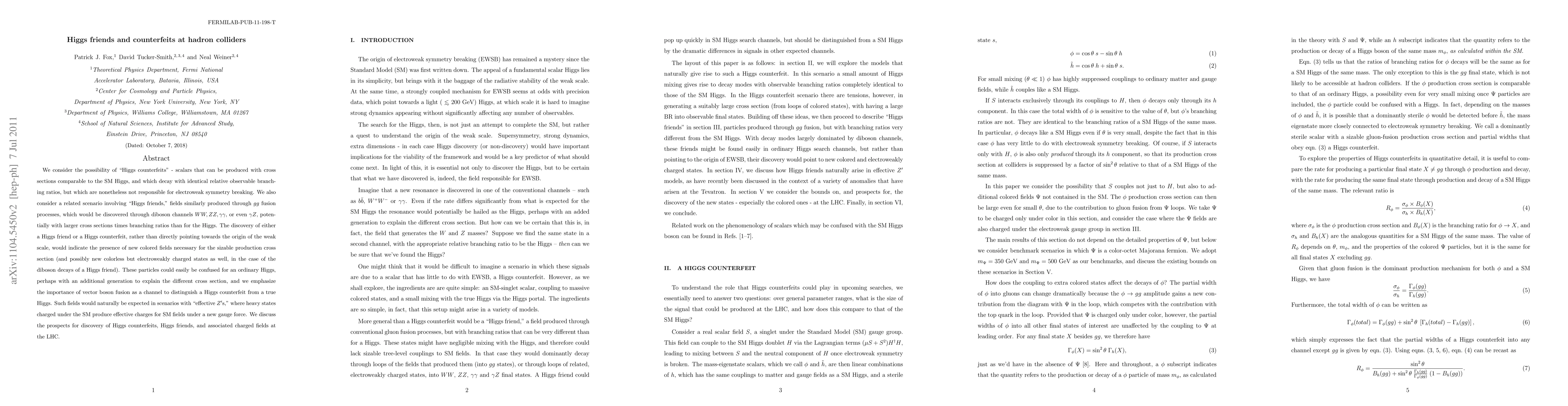 We consider the possibility of "Higgs counterfeits" - scalars that can be produced with cross sections comparable to the SM Higgs, and which decay with identical relative observable branching ratios, but which are nonetheless not responsible for electroweak symmetry breaking. We also consider a related scenario involving "Higgs friends," fields similarly produced through gg fusion processes, which would be discovered through diboson channels WW, ZZ, gamma gamma, or even gamma Z, potentially with larger cross sections times branching ratios than for the Higgs. The discovery of either a Higgs friend or a Higgs counterfeit, rather than directly pointing towards the origin of the weak scale, would indicate the presence of new colored fields necessary for the sizable production cross section (and possibly new colorless but electroweakly charged states as well, in the case of the diboson decays of a Higgs friend). These particles could easily be confused for an ordinary Higgs, perhaps with an additional generation to explain the different cross section, and we emphasize the importance of vector boson fusion as a channel to distinguish a Higgs counterfeit from a true Higgs. Such fields would naturally be expected in scenarios with "effective Z's," where heavy states charged under the SM produce effective charges for SM fields under a new gauge force. We discuss the prospects for discovery of Higgs counterfeits, Higgs friends, and associated charged fields at the LHC.