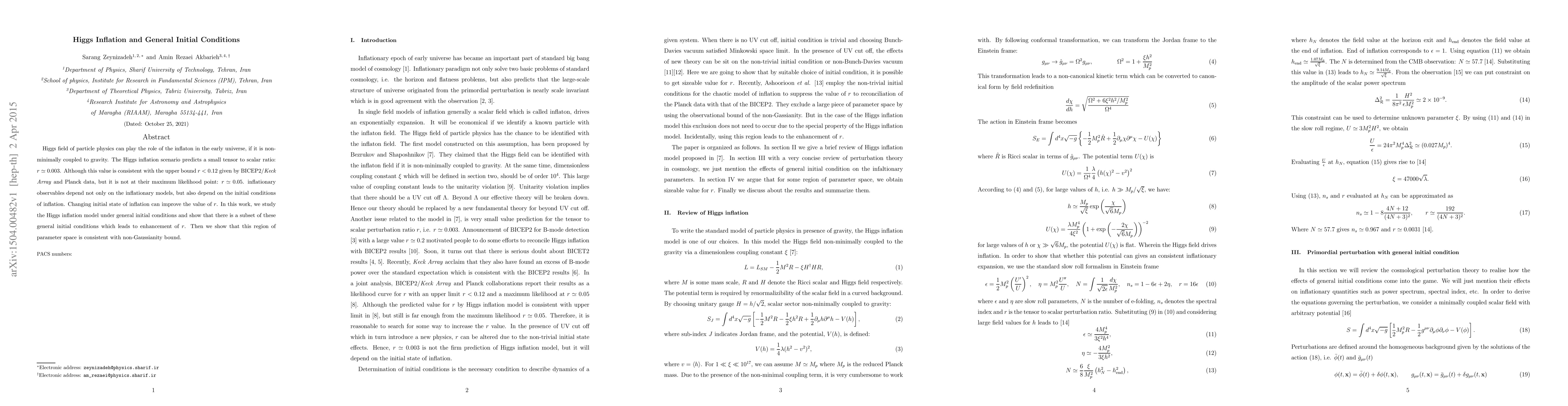 This paper explores Higgs inflation with non-minimal gravitational coupling, predicting a tensor to scalar ratio $r \simeq 0.003$. It investigates how varying initial conditions can enhance $r$ and finds a subset of conditions that boost $r$ while remaining consistent with non-Gaussianity constraints.