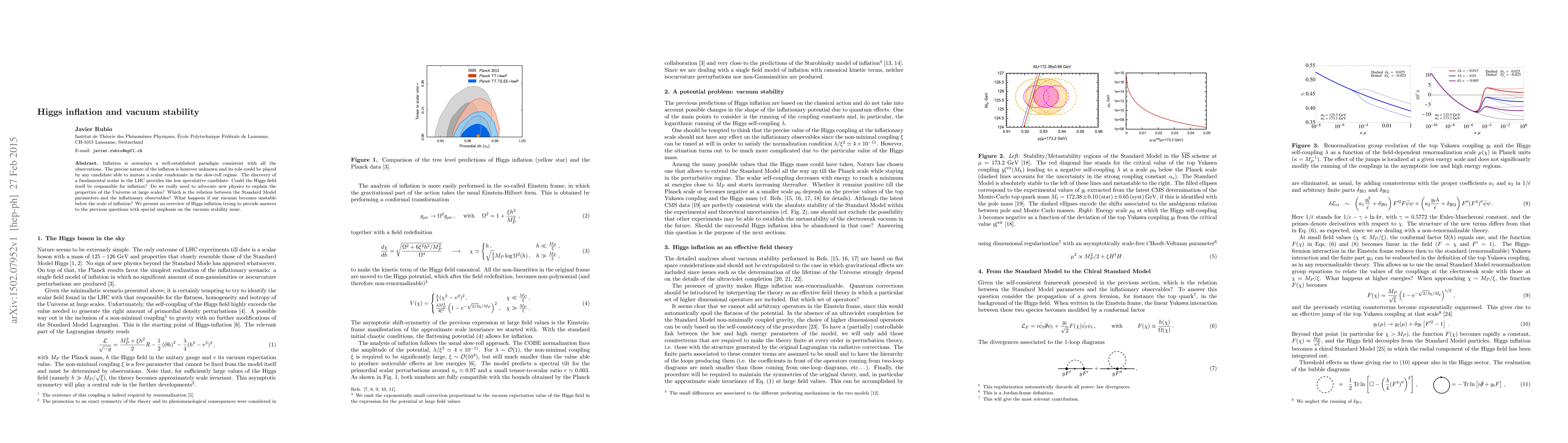 This paper explores the possibility of the Higgs field driving inflation and examines the implications for vacuum stability within the Standard Model. It investigates the relationship between Standard Model parameters and inflationary observables, addressing whether new physics is necessary beyond the Higgs field for explaining large-scale universe properties.