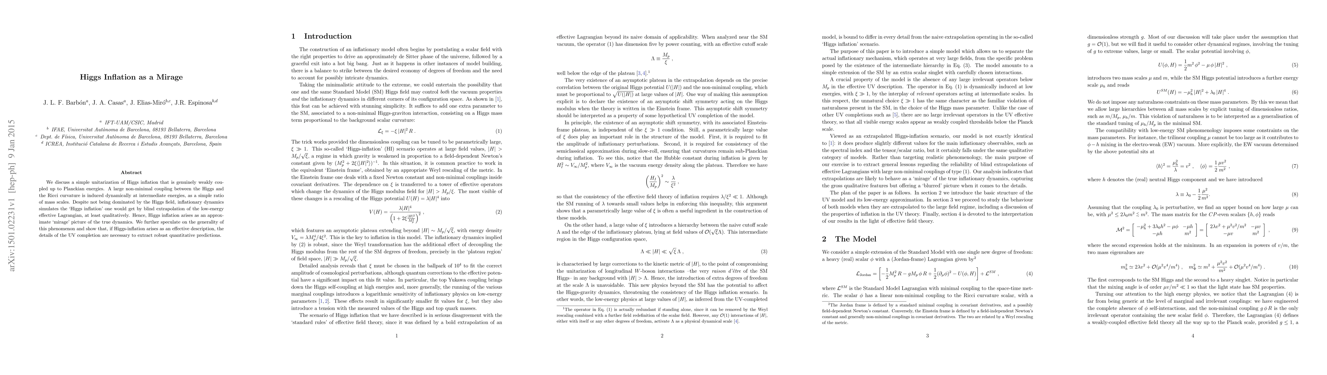 We discuss a simple unitarization of Higgs inflation that is genuinely weakly coupled up to Planckian energies. A large non-minimal coupling between the Higgs and the Ricci curvature is induced dynamically at intermediate energies, as a simple ratio of mass scales. Despite not being dominated by the Higgs field, inflationary dynamics simulates the `Higgs inflation' one would get by blind extrapolation of the low-energy effective Lagrangian, at least qualitatively. Hence, Higgs inflation arises as an approximate `mirage' picture of the true dynamics. We further speculate on the generality of this phenomenon and show that, if Higgs-inflation arises as an effective description, the details of the UV completion are necessary to extract robust quantitative predictions.