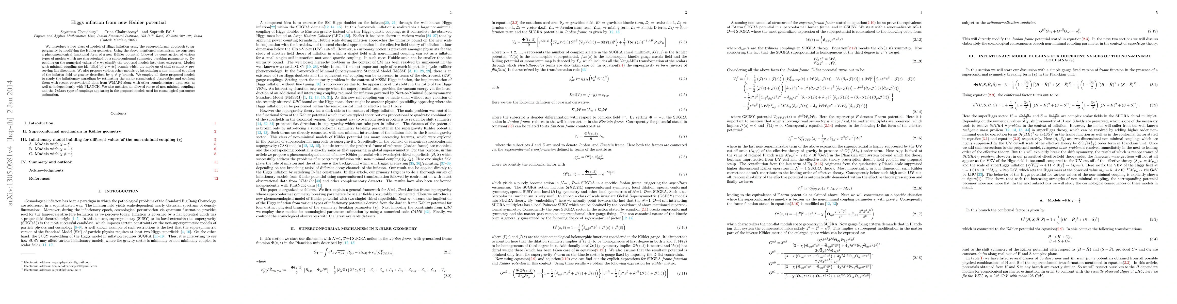 We introduce a new class of models of Higgs inflation using the superconformal approach to supergravity by modifying the K$\ddot{a}$hler geometry. Using such a mechanism, we construct a phenomenological functional form of a new K$\ddot{a}$hler potential. From this we construct various types of models which are characterized by a superconformal symmetry breaking parameter $\chi$, and depending on the numerical values of $\chi$ we classify all of the proposed models into three categories. Models with minimal coupling are identified by $\chi=\pm\frac{2}{3}$ branch which are made up of shift symmetry preserving flat directions. We also propose various other models by introducing a non-minimal coupling of the inflaton field to gravity described by $\chi\neq\frac{2}{3}$ branch. We employ all these proposed models to study the inflationary paradigm by estimating the major cosmological observables and confront them with recent observational data from WMAP9 along with other complementary data sets, as well as independently with PLANCK. We also mention an allowed range of non-minimal couplings and the {\it Yukawa} type of couplings appearing in the proposed models used for cosmological parameter estimation.