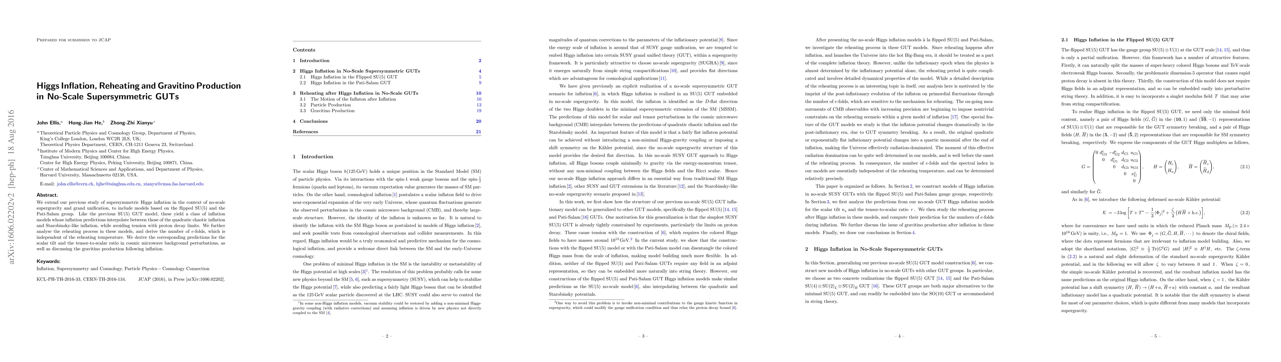 This paper extends studies of supersymmetric Higgs inflation in no-scale supergravity grand unification, focusing on flipped SU(5) and Pati-Salam models. It analyzes reheating processes and gravitino production, predicting inflation models that interpolate between quadratic chaotic and Starobinsky-like inflation, while maintaining consistency with proton decay limits.