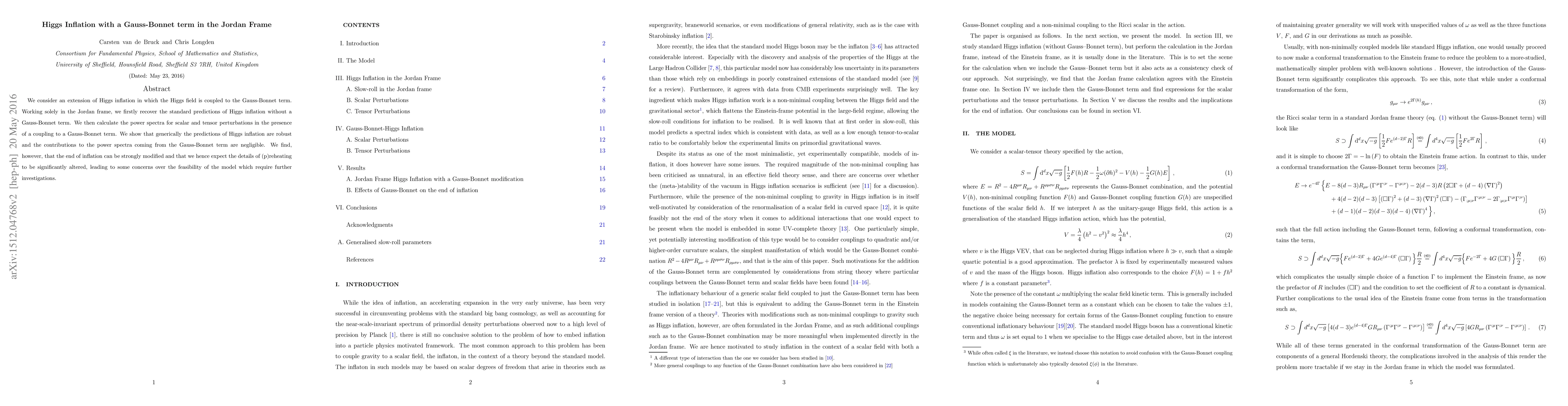 This paper extends Higgs inflation by coupling the Higgs field to the Gauss-Bonnet term in the Jordan frame, finding that standard predictions remain largely unchanged, though the end of inflation and subsequent reheating may be significantly altered, necessitating further study.