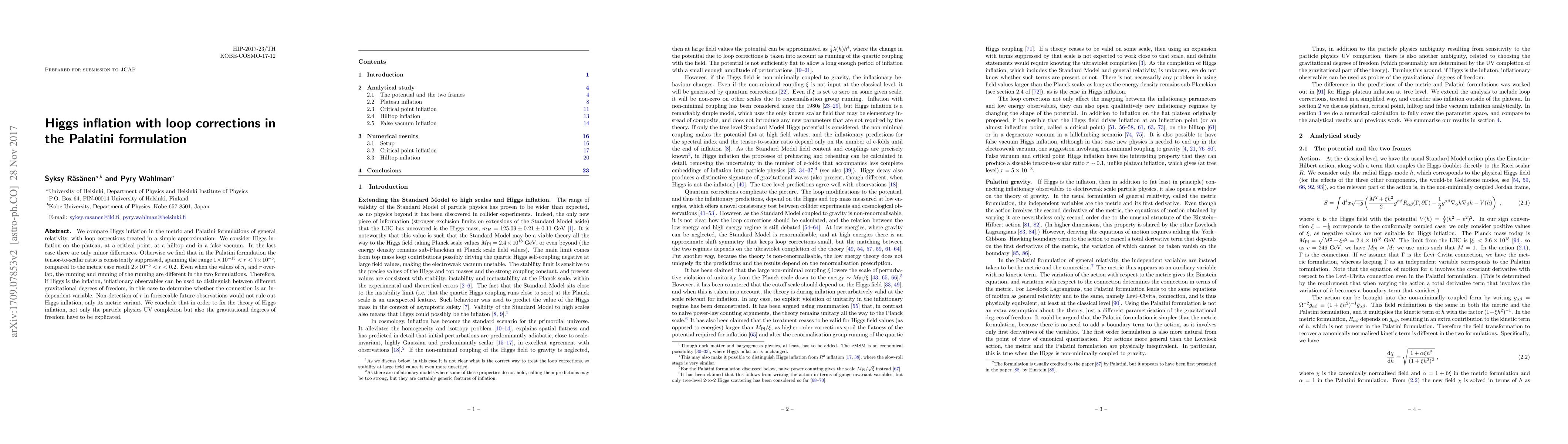 We compare Higgs inflation in the metric and Palatini formulations of general